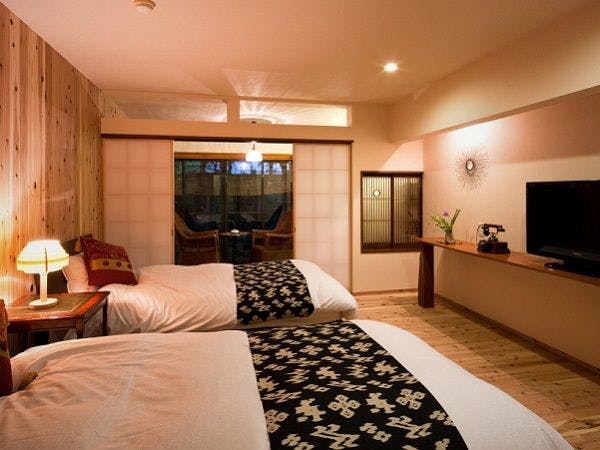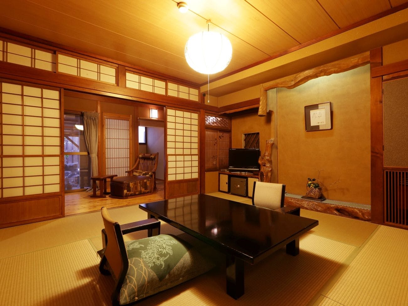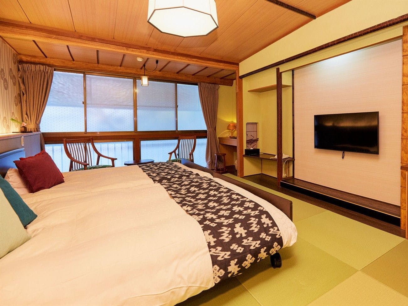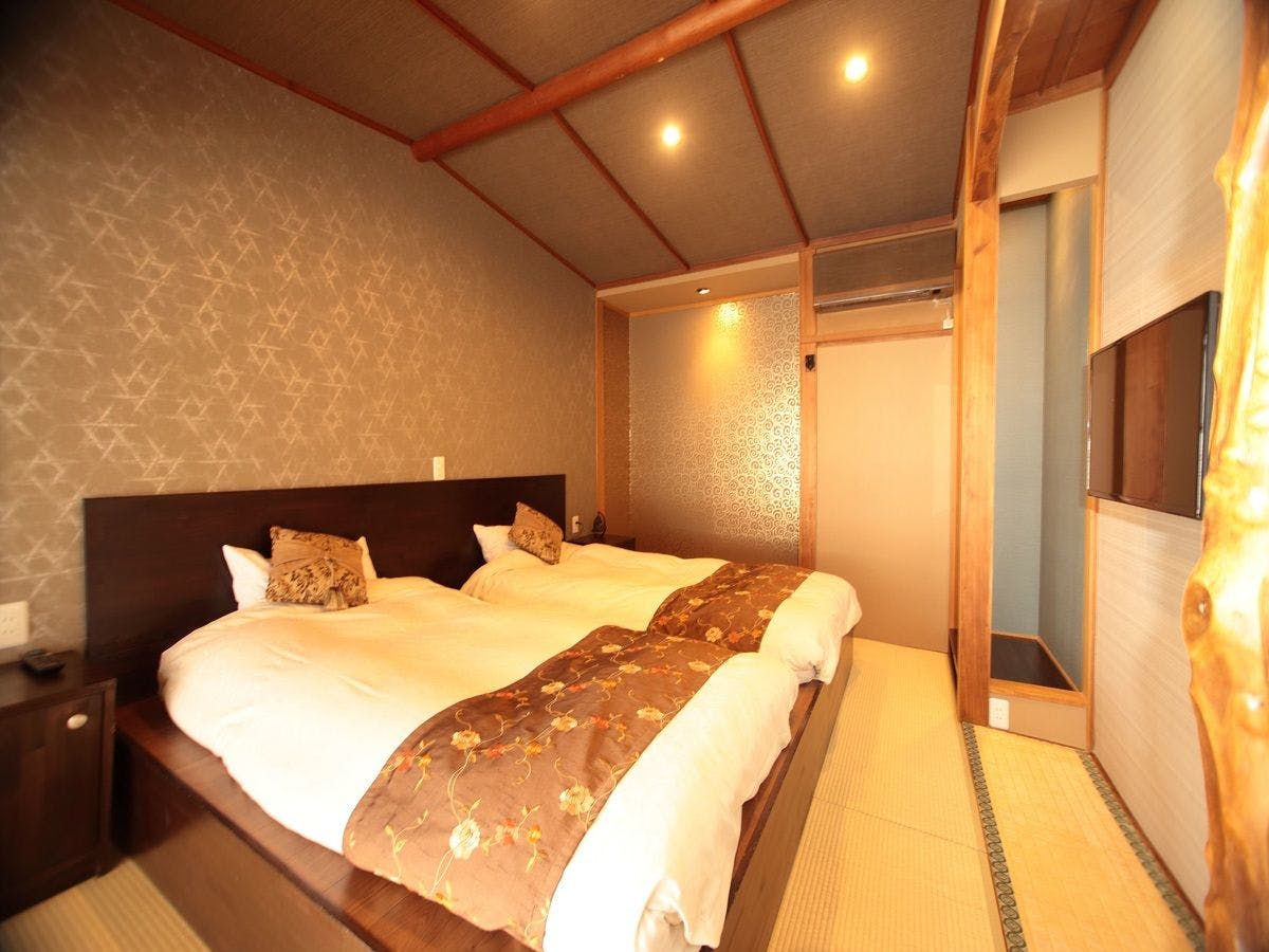 温泉入浴後にすぐに横になれるよう寝室のついた和洋室。