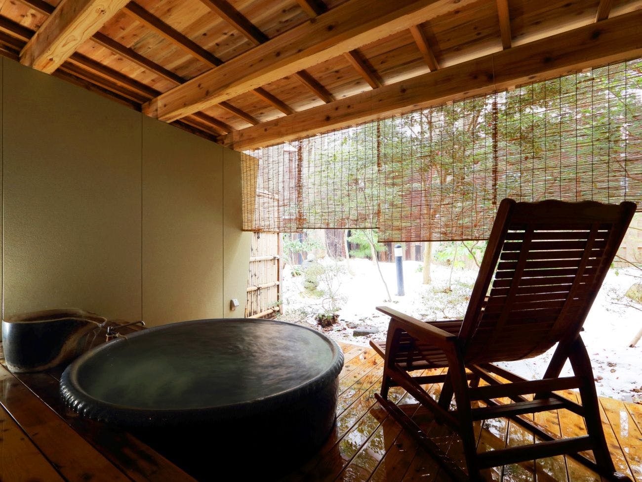 中庭を望む、雅な信楽焼の露天風呂付き客室。