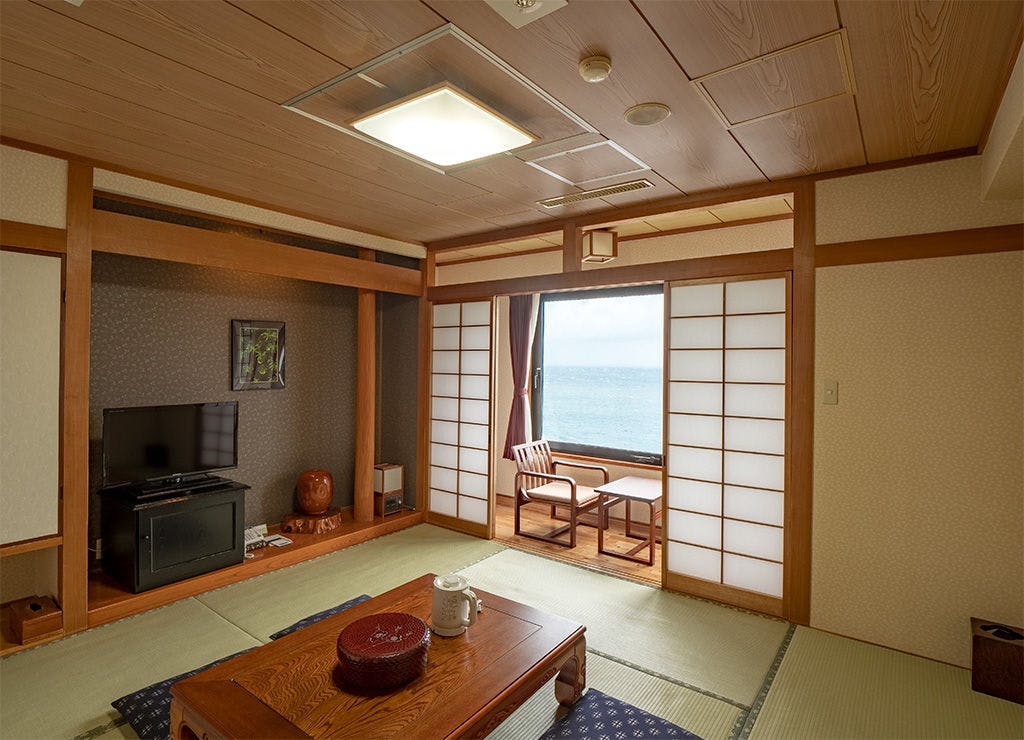 MIZUMORIフロアにあります。和室8畳タイプのバス・トイレ付です。眺望は海・山おまかせになります。