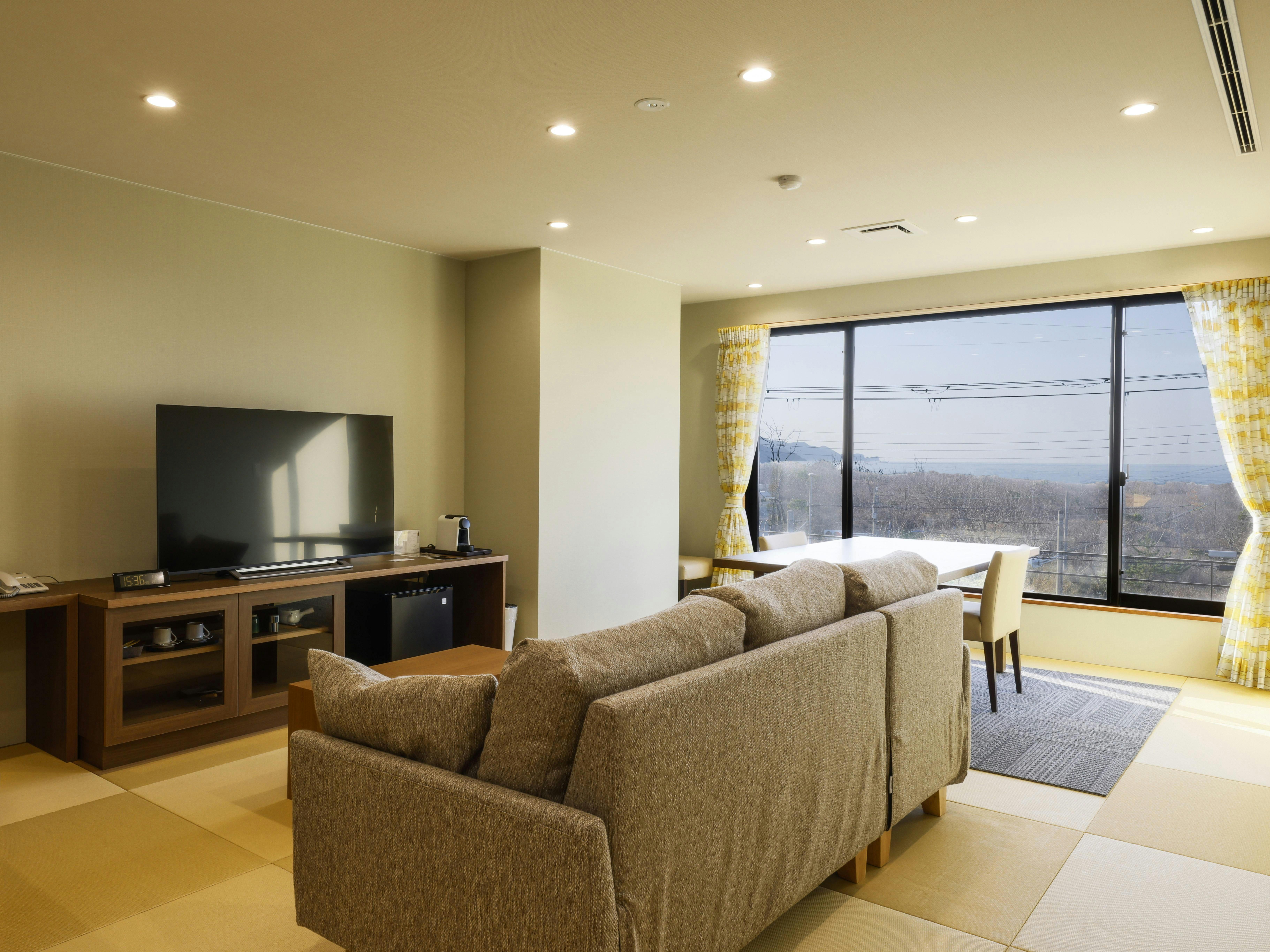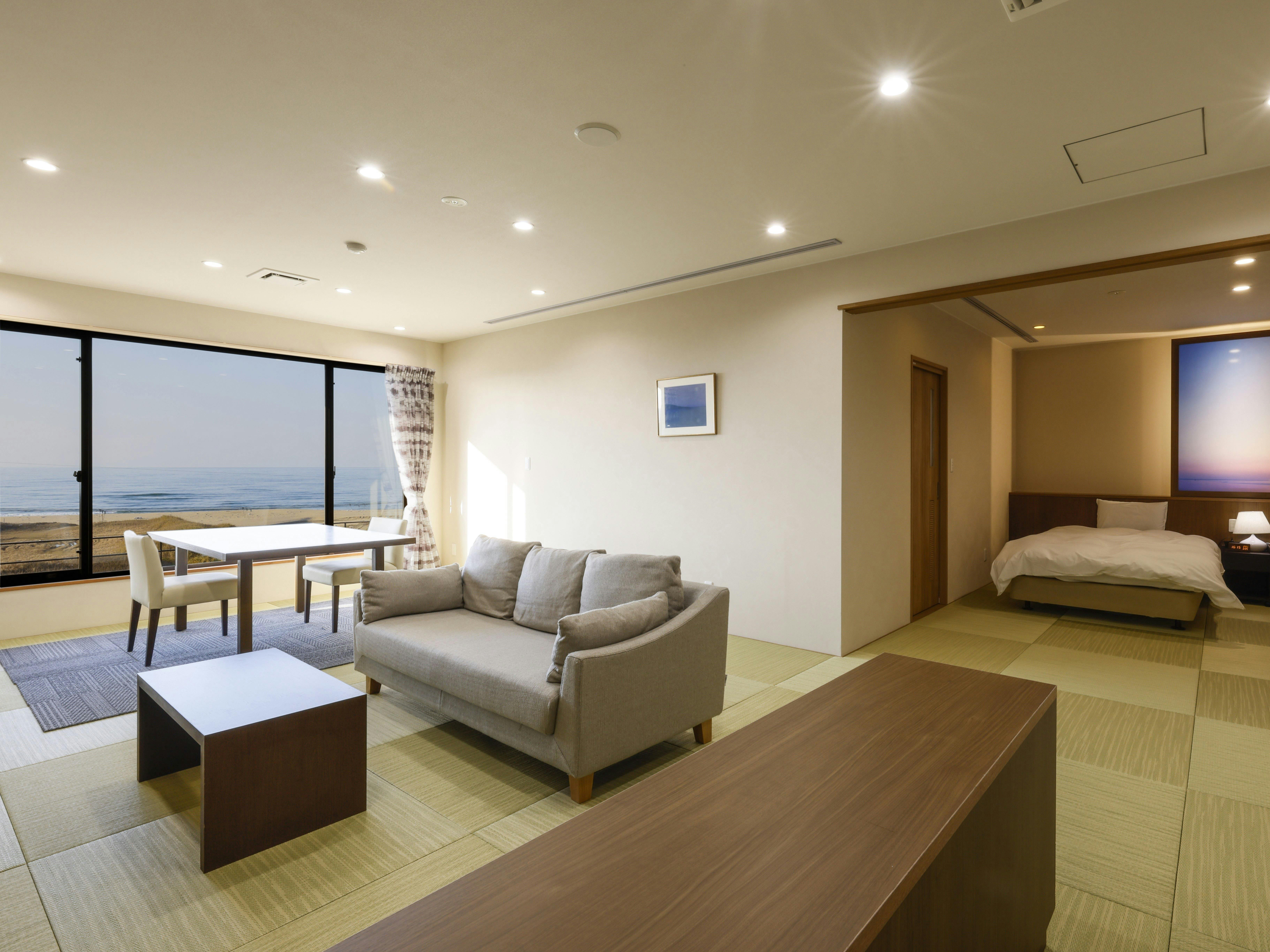 2021年の秋にリニューアルし、ゆったりと広い日本海一望の展望温泉内湯付き和洋室に生まれ変わりました。