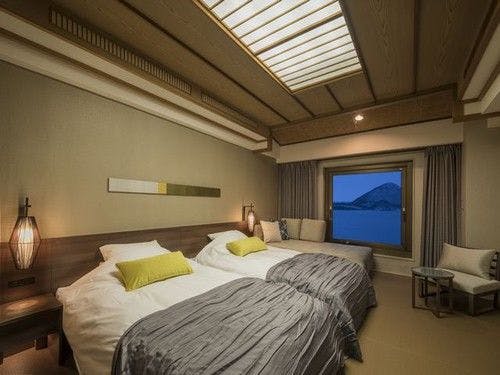 2名はお布団で、2名はベッドで・・というお布団とベッドとどちらも利用されたいご家族やグループ向けのお部屋です。