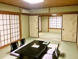ふすまによって仕切られた客間が二間ついたお部屋です。 仲の良いご友人や、あるいは3世代ご家族でのちょっとしたグループ旅行に最適なお部屋タイプです。※こちらのお部屋は愛犬はご利用できません。