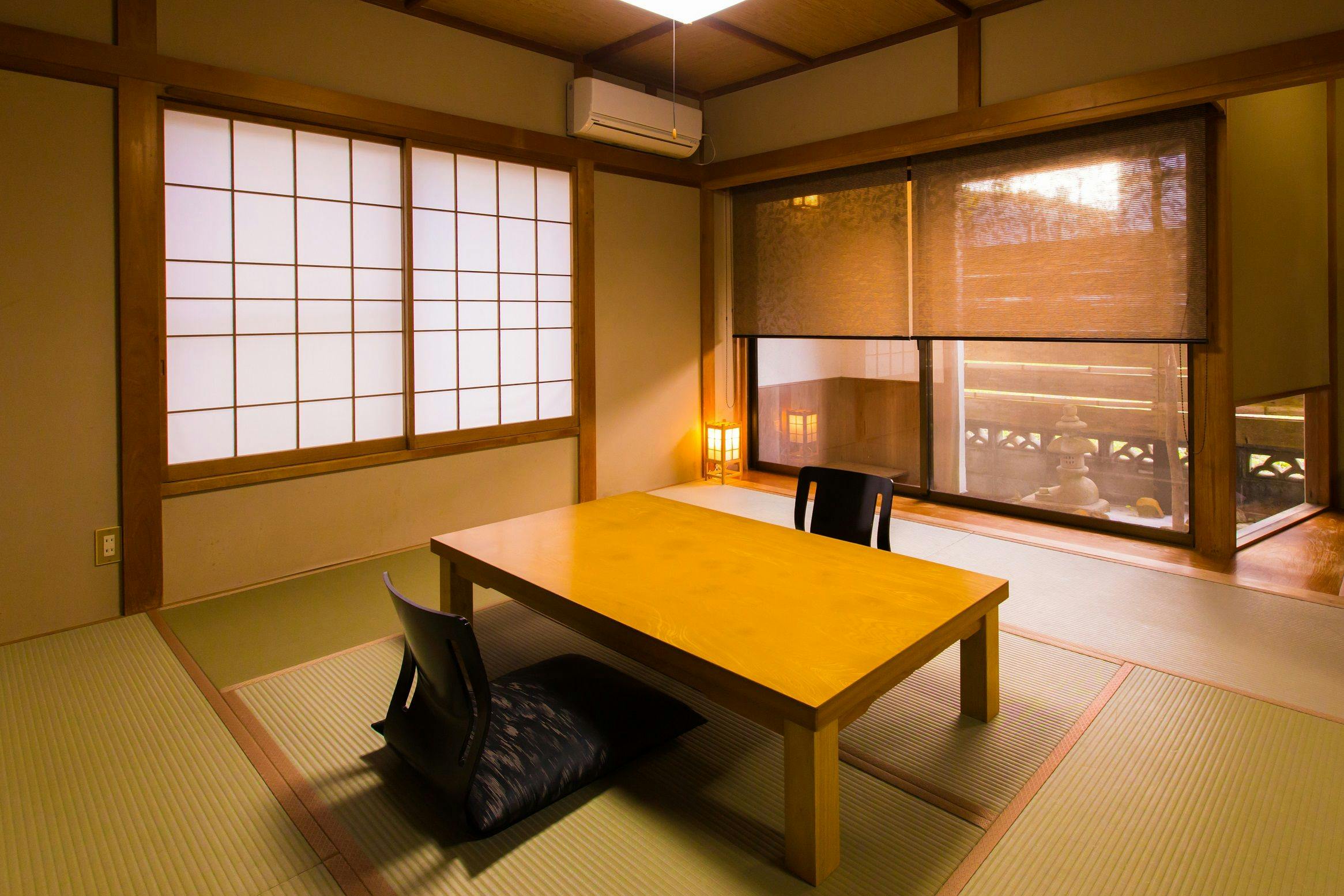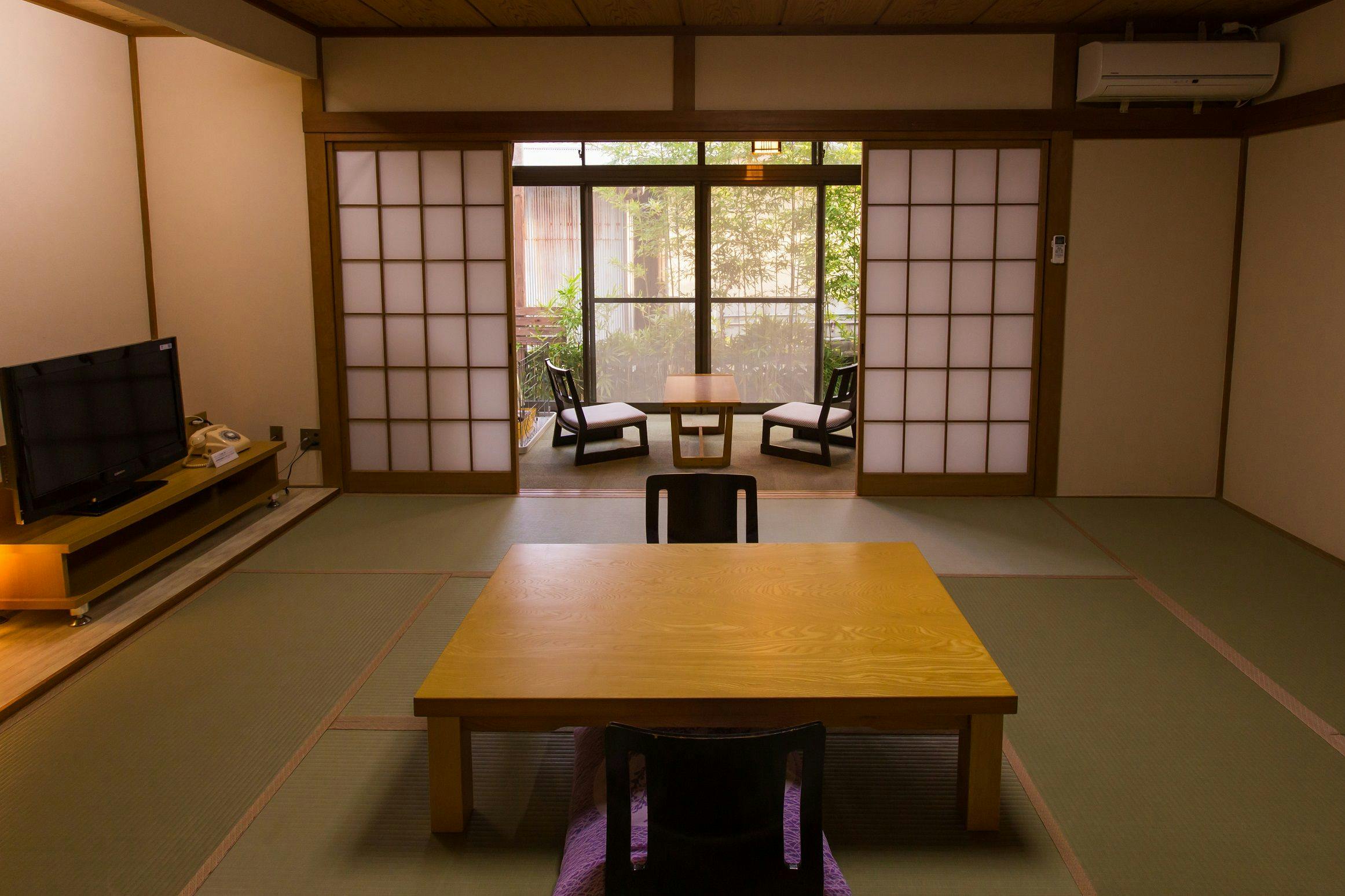 二間のお部屋に縁側がついた広めのお部屋です。 お部屋付属の小さなお風呂に下賀茂温泉を引いてきました。つまりこちらも源泉かけ流し。お部屋に居ながらより気軽に下賀茂温泉をお楽しみいただけます。※こちらのお部屋は愛犬はご利用できません。