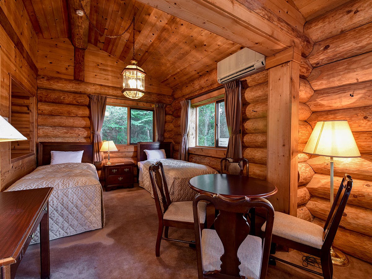 山小屋の雰囲気が漂う丸太で作られたコテージ