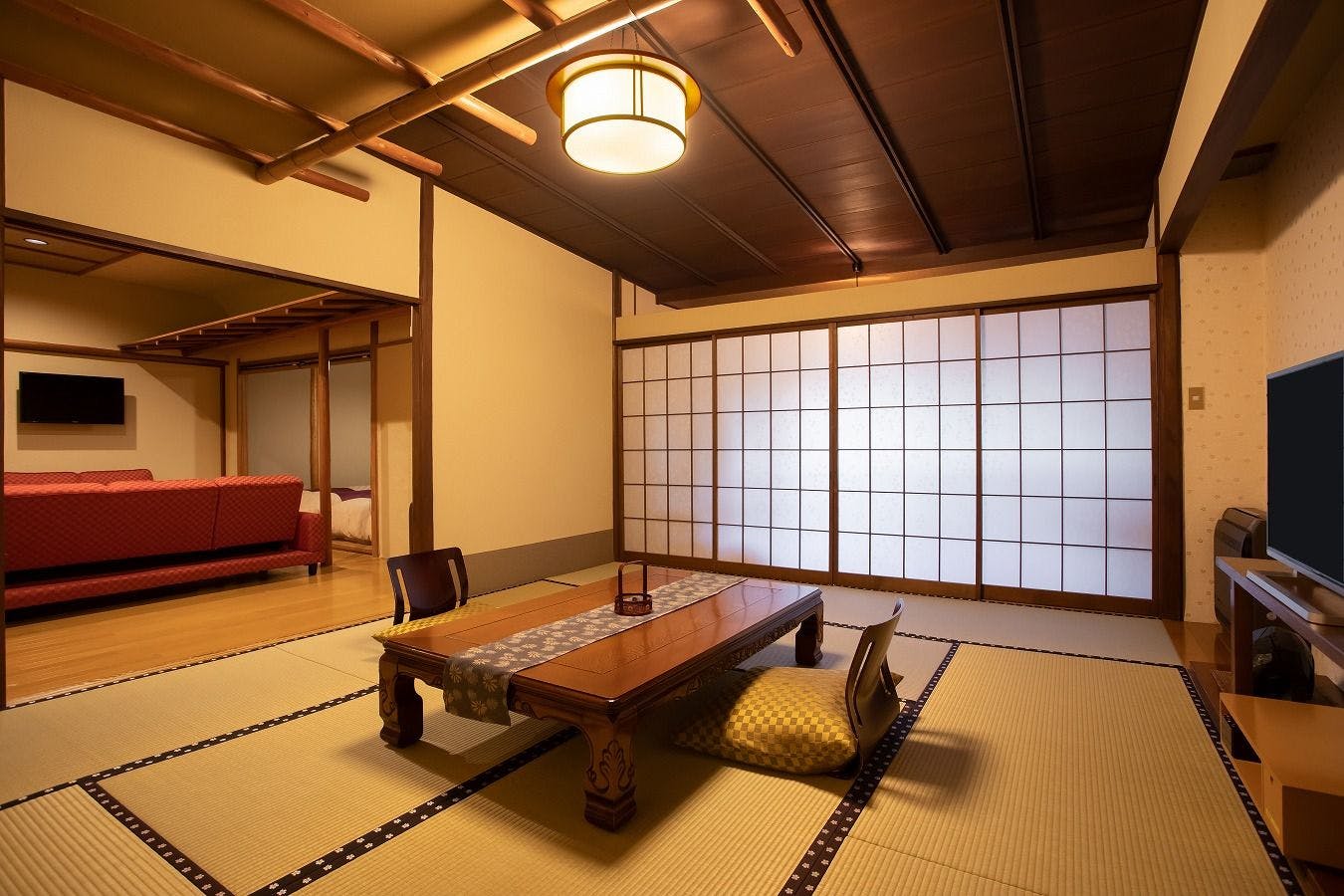 源泉かけ流し内風呂付和モダンスイート(和室8畳,ベッドルーム6畳,広縁)
