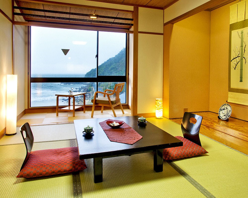 「夕日百選」の絶景を楽しめる全室オーシャンビューの宿。お部屋や露天風呂から望む景色は一見の価値あり。眺望はもちろん、丹後の美食もこの宿の魅力。鮮度抜群の海の幸や和牛料理を存分に味わえます。