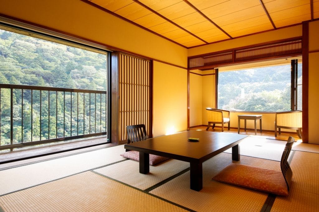 自然豊かな湯の山温泉に佇む湯宿。大浴場の内湯は24時間入浴可能、2つの貸切風呂は平日無料です。また地元の食材にこだわった季節の会席料理も人気。ペット預かり処や夏季の屋外プールなど設備も充実です。