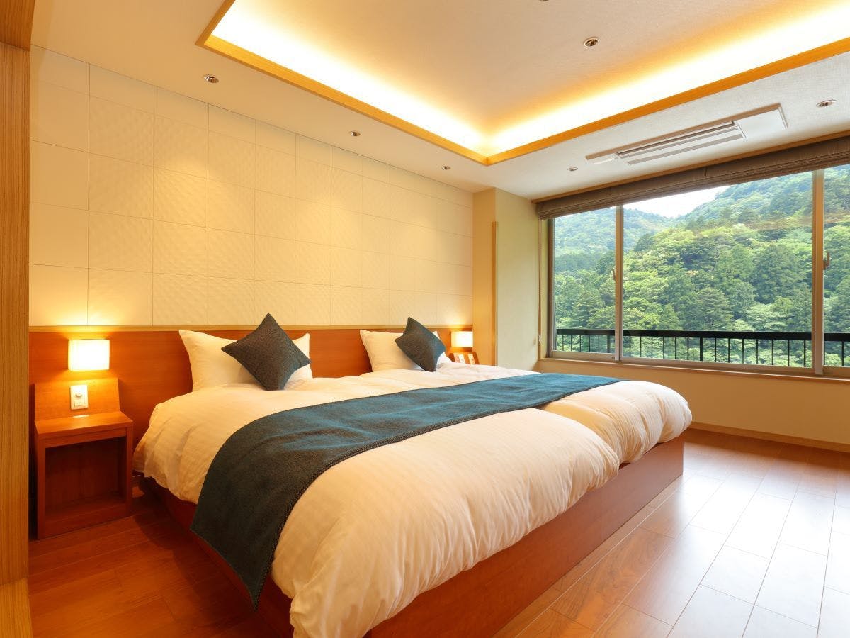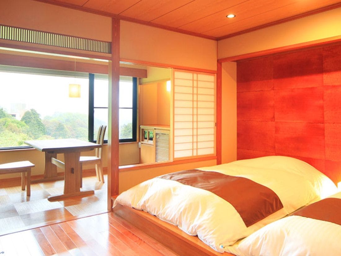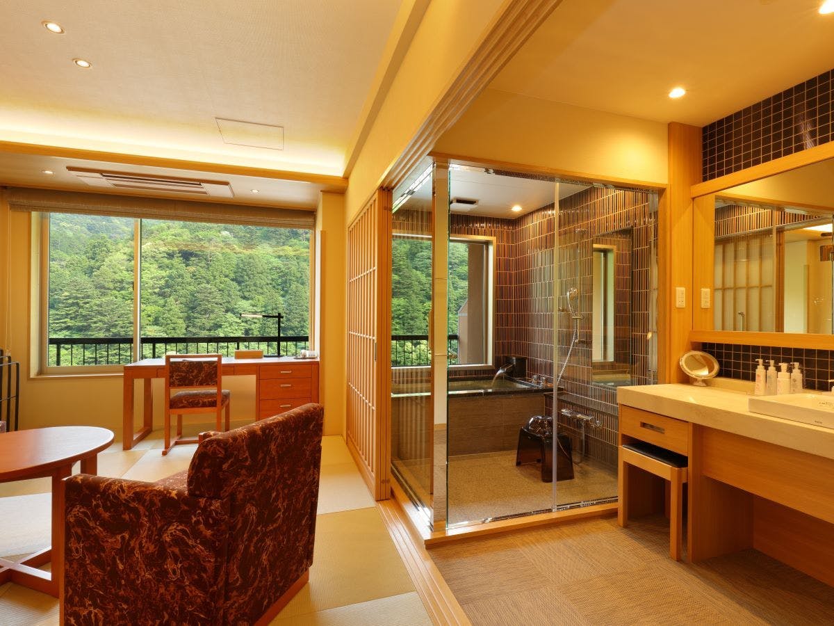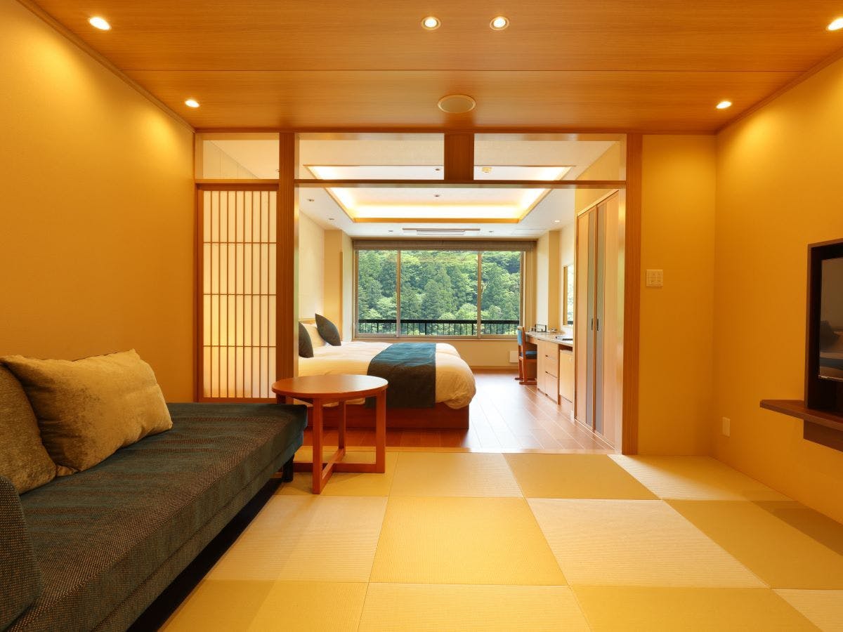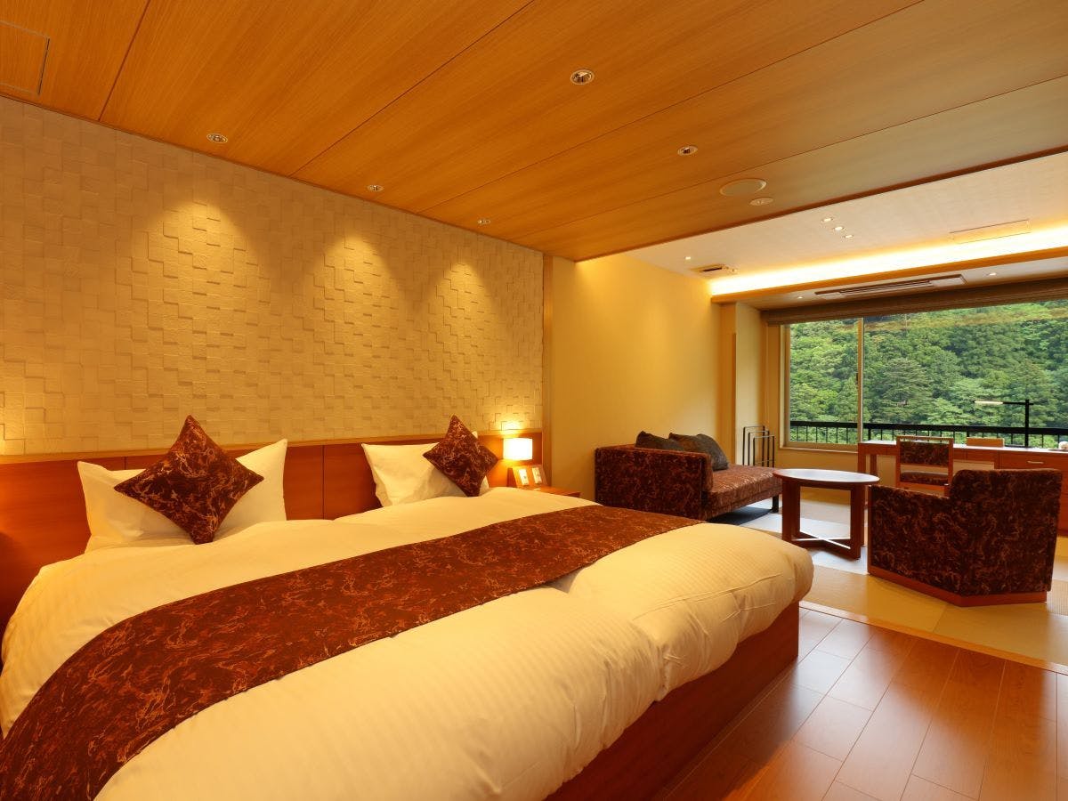 温泉半露天風呂+和室+ベッドルームのある大変贅沢なつくりのお部屋(禁煙)