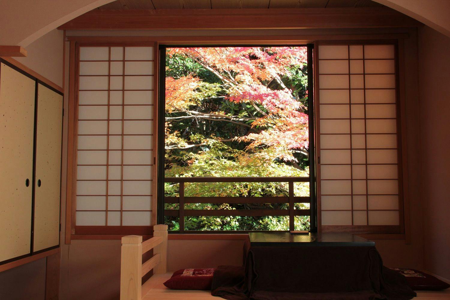 窓の外にはすぐ近くに紅葉の木があり、紅葉シーズンには、窓一面が真っ赤になります!