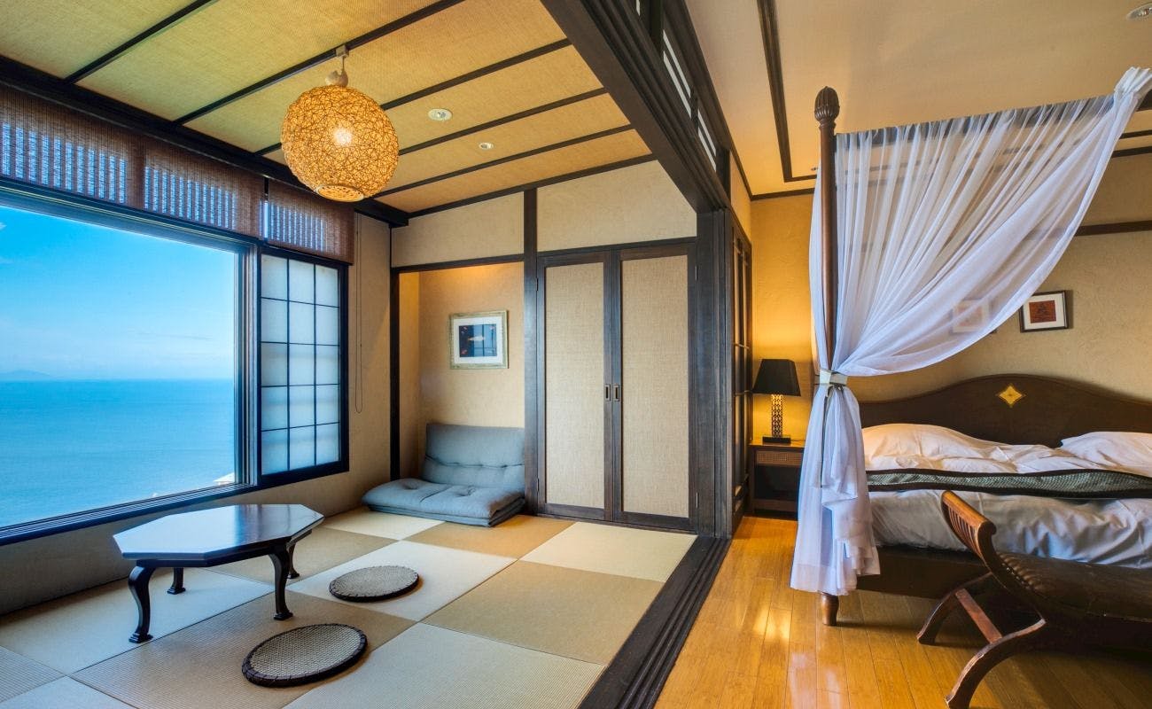 ■本館5F(海側)/8畳和室+天蓋洋室 42.1平米+5.6平米(デッキ)/オーシャンビュー