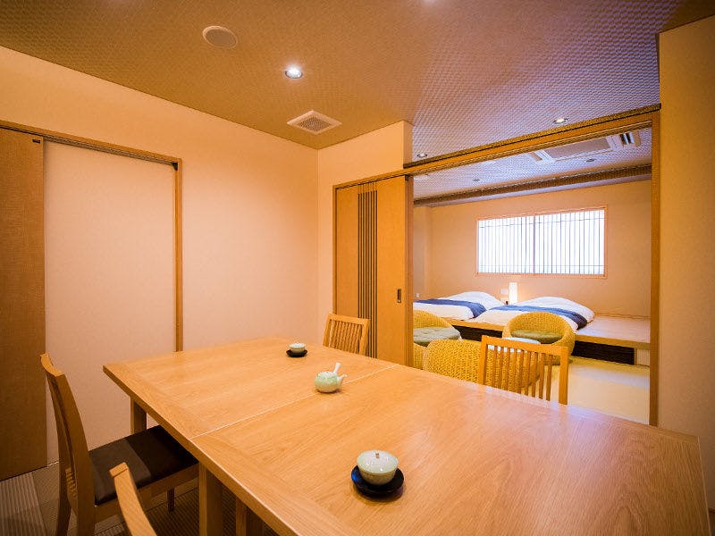 大人の休日をお過ごしいただけるよう、広々とした客室空間に露天風呂をご用意致しました。ご夕食・ご朝食は客室内の食事の間にてお部屋係がご提供致します。