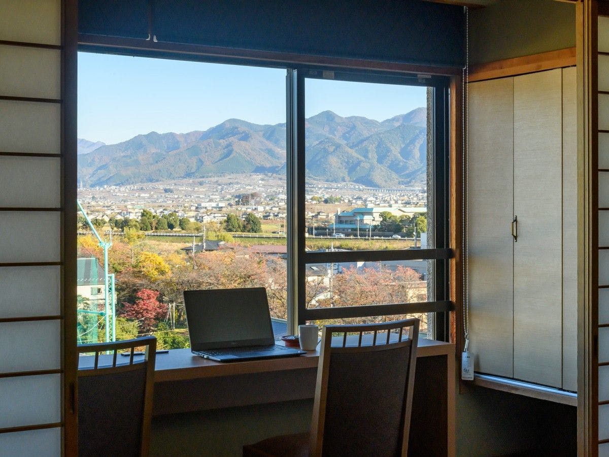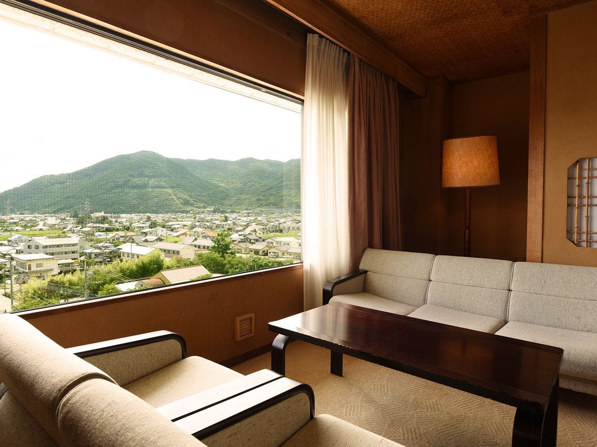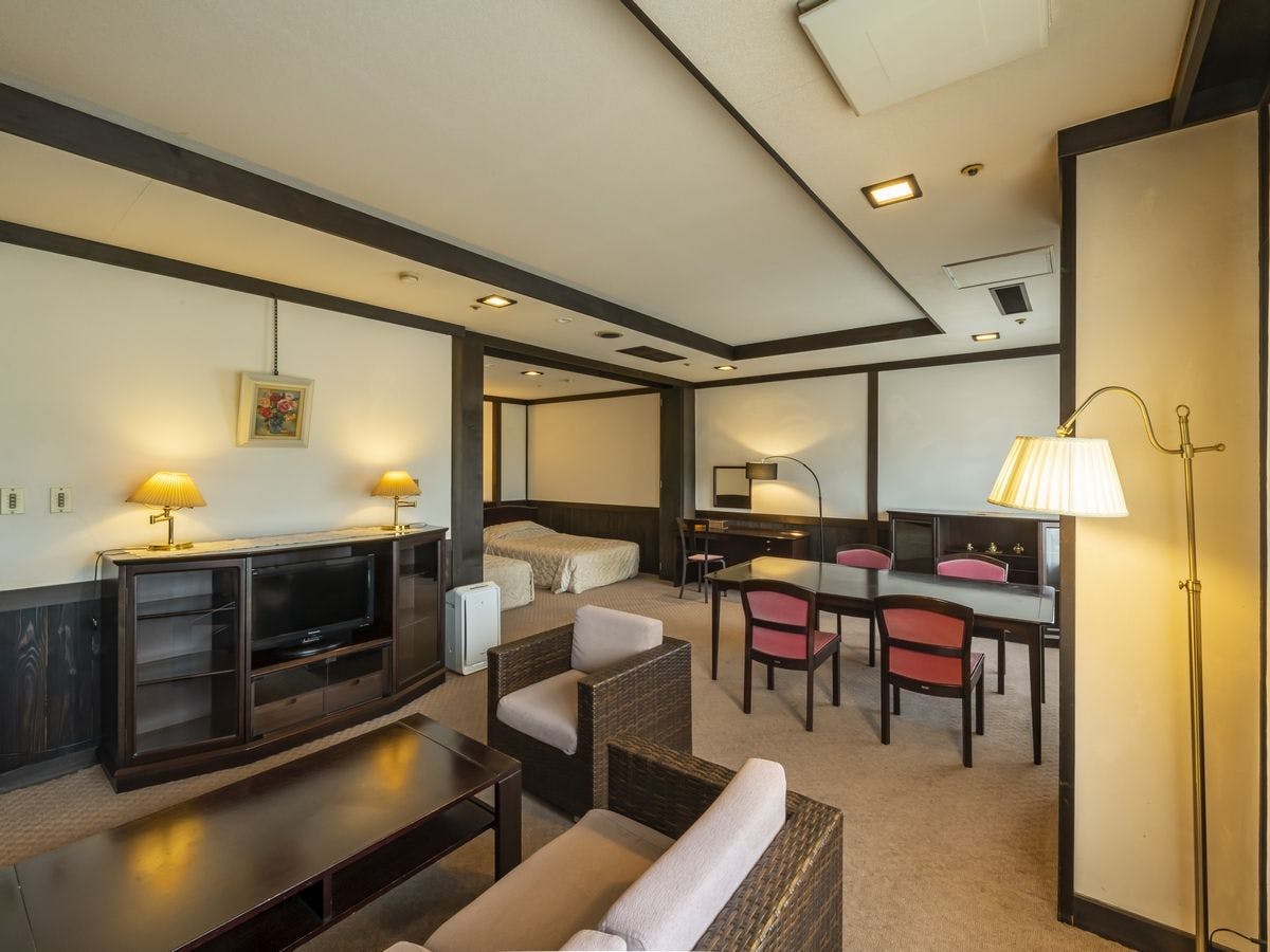 最上階禁煙フロア6階、南アルプスの山並みを遠望する、ツインベッドとリビングエリア付のセミスイートタイプ客室です。
