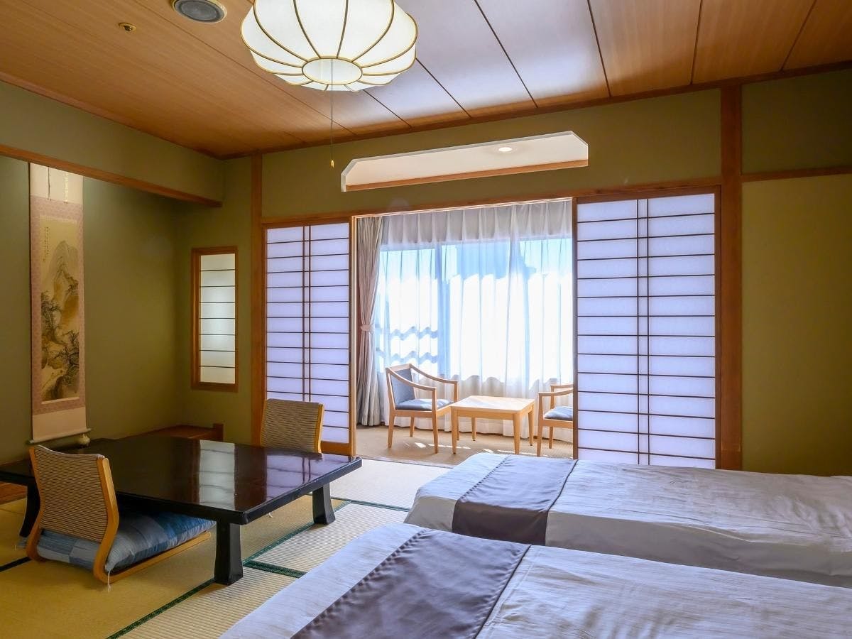 2020年12月、ゆったりとした和室12畳一間にツインベッドを配置した禁煙和洋室が誕生。