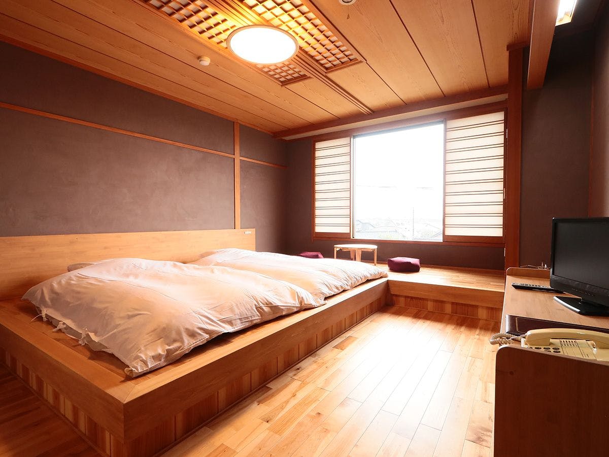 全室南向きの角部屋和室です。お天気の良い日には富士山を見ることができます。4月には眼下に桃のお花の桃源郷が、6月には宿の前の川に蛍の舞が、1年を通じて夜には甲府盆地の夜景を望む事が出来ます。