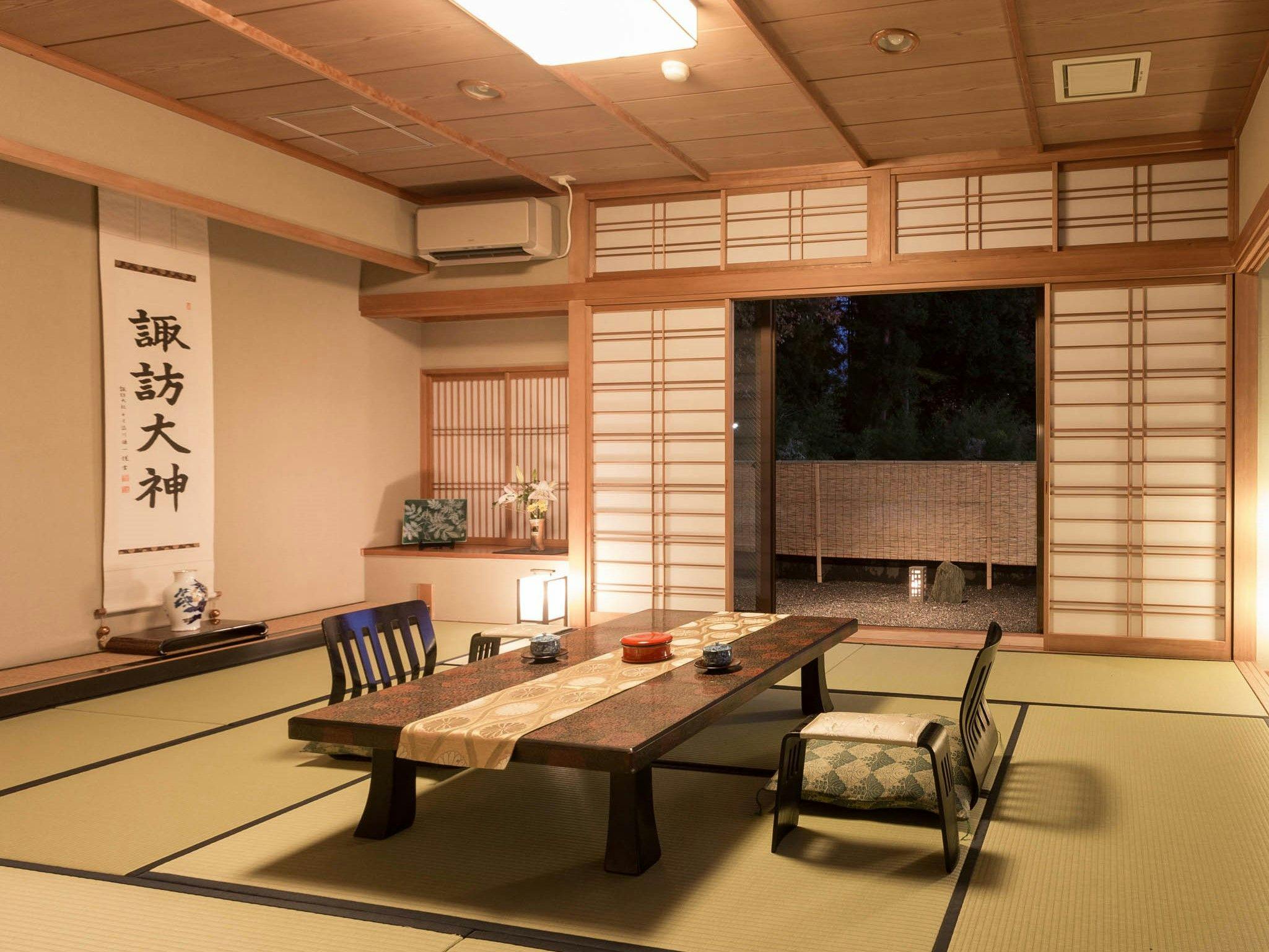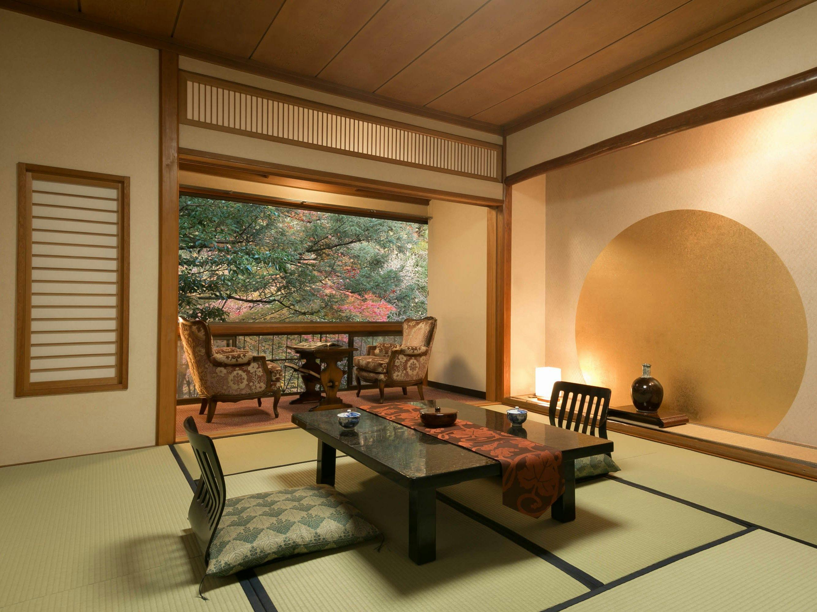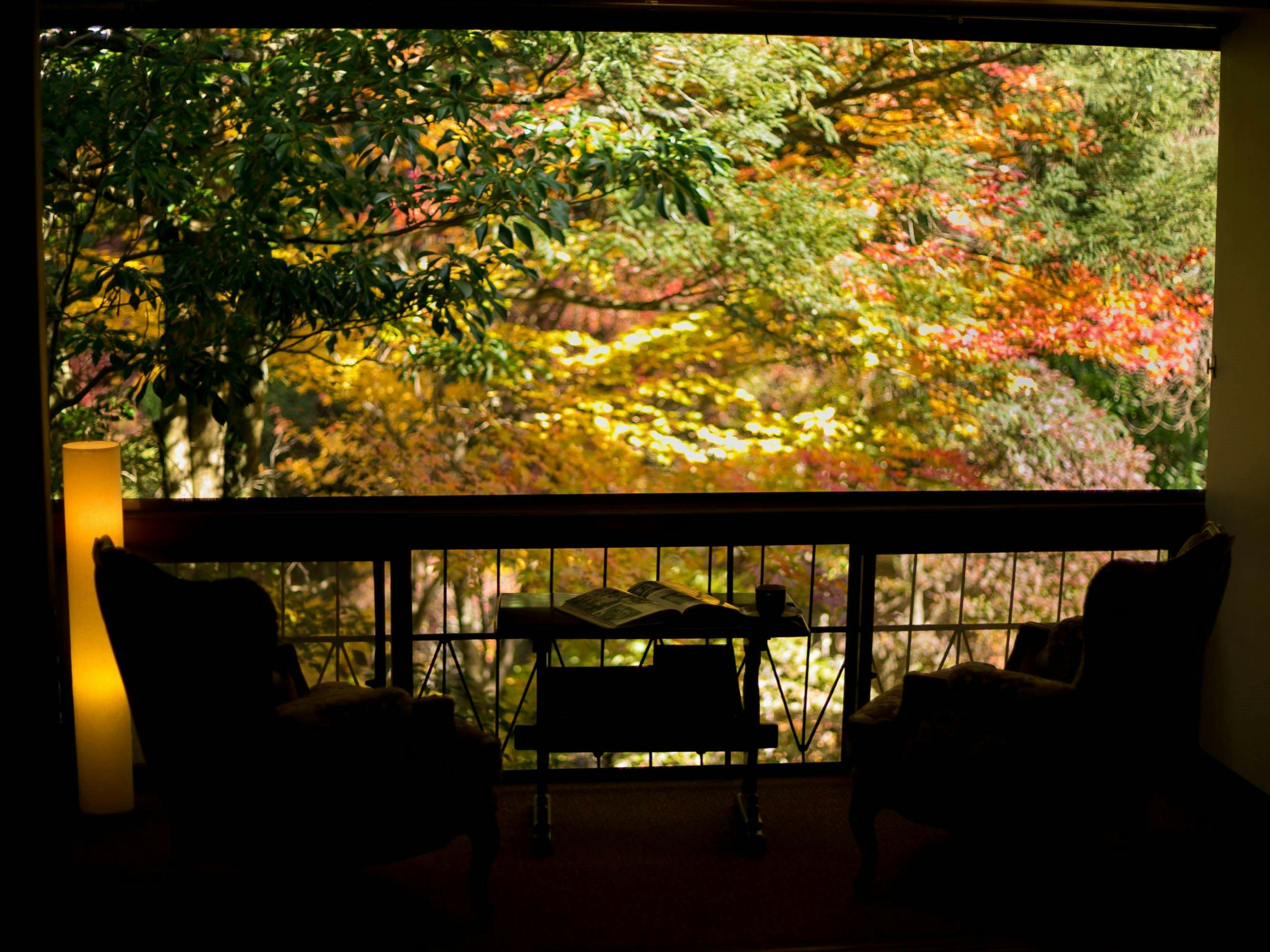 眼下には大名茶人「小堀遠州」が施した銘庭【林泉式庭園】を望め、四季折々の彩りや柔らかく響く滝の音がこころを安らげ、旅の疲れを癒します