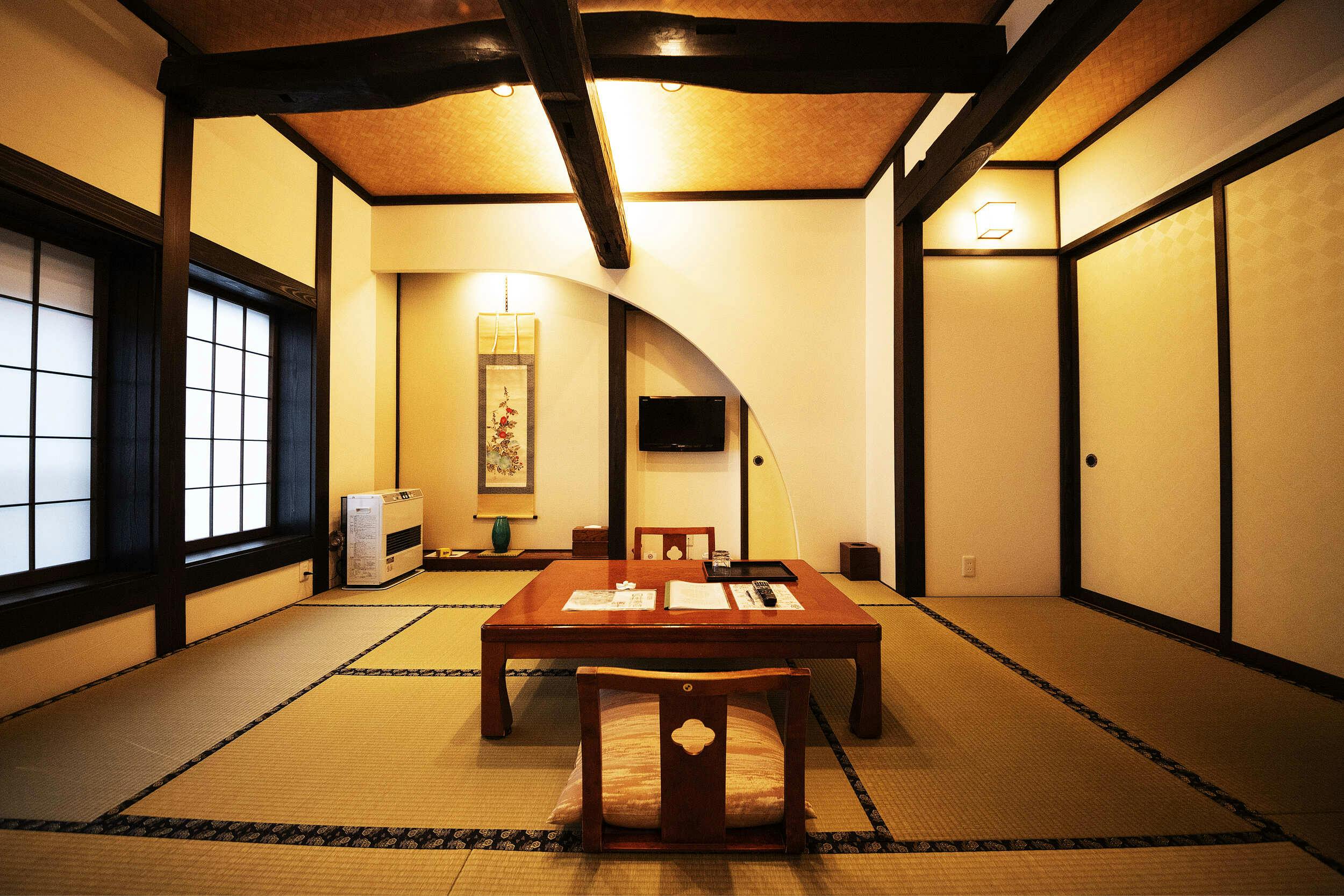 庄屋造りの一軒宿。高さはございませんが、窓からは自然に囲まれた非日常空間を感じられます。階段を踏みしめる度に、木造建築の温かさなどを肌で感じられます。