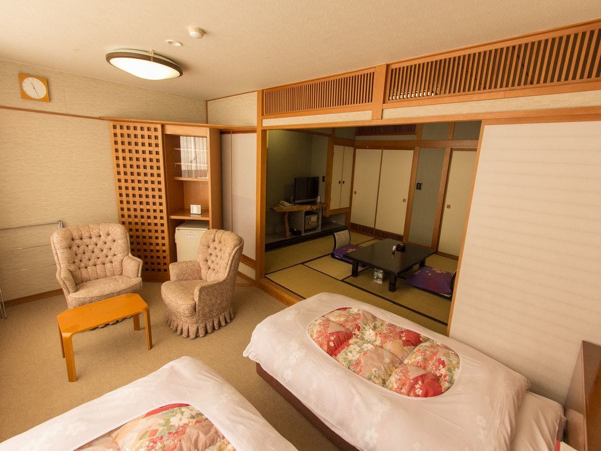 ・広々10畳の和室と2ベットルーム(約6畳)がついた和洋室です。