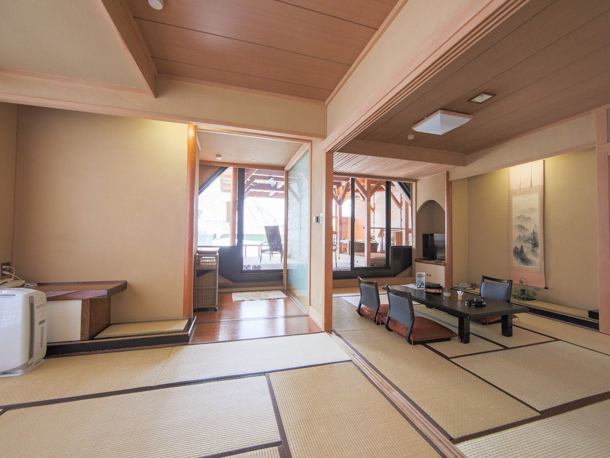 1日2部屋の露天付特別客室は「花水木(はなみずき)」と「紅山桜(べにやまざくら)」露天から眺める遠くの峰々は季節の移ろいを感じさせてくれます。