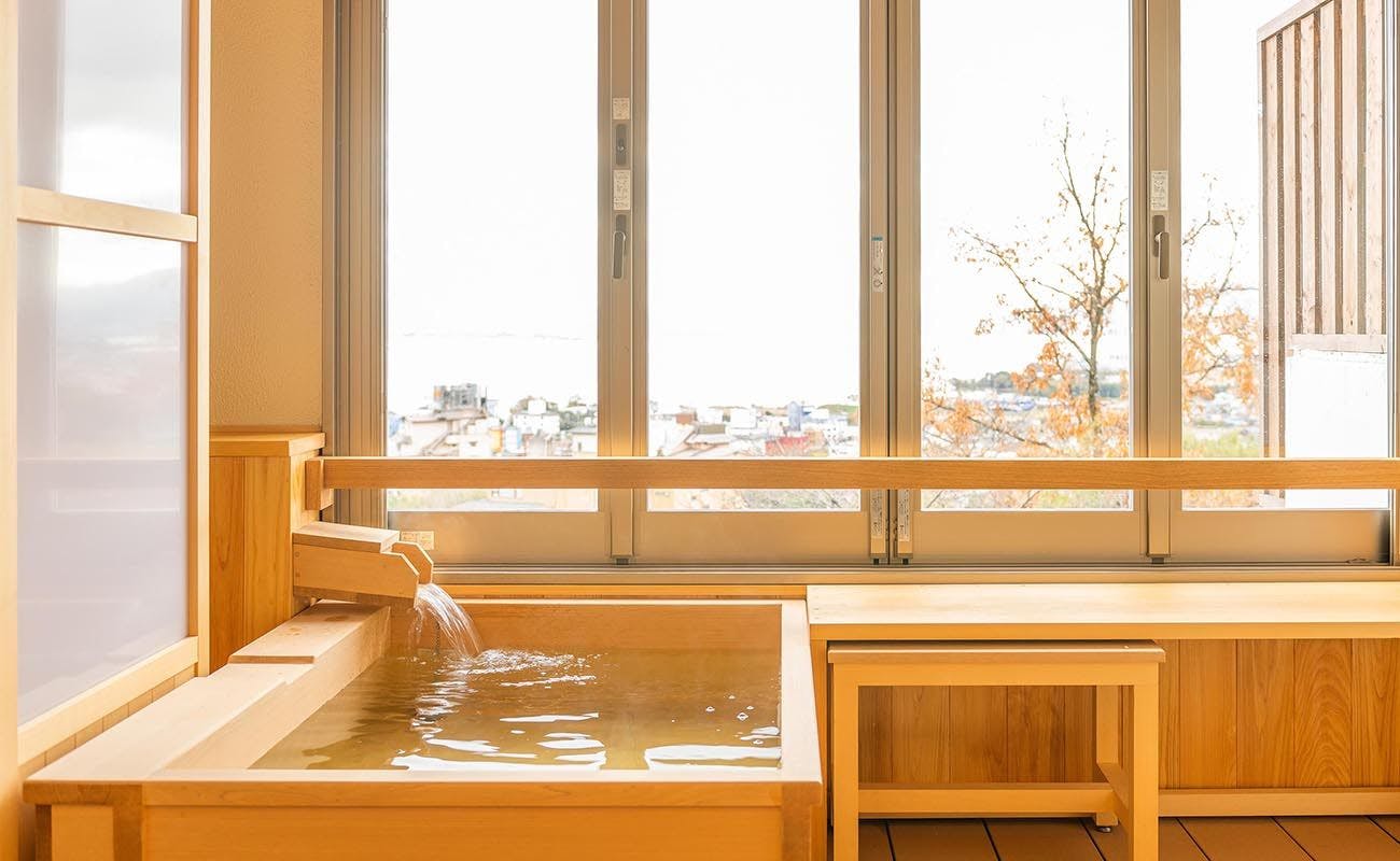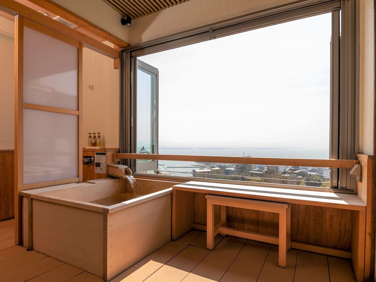おごと温泉旅館で最も高台にある雄山荘の中でも、高層階の9~10階に位置しております。