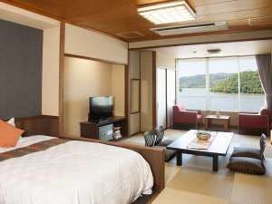 和洋室バストイレ付。2004年に改装した和モダンなお部屋です。浜名湖が一望できます。