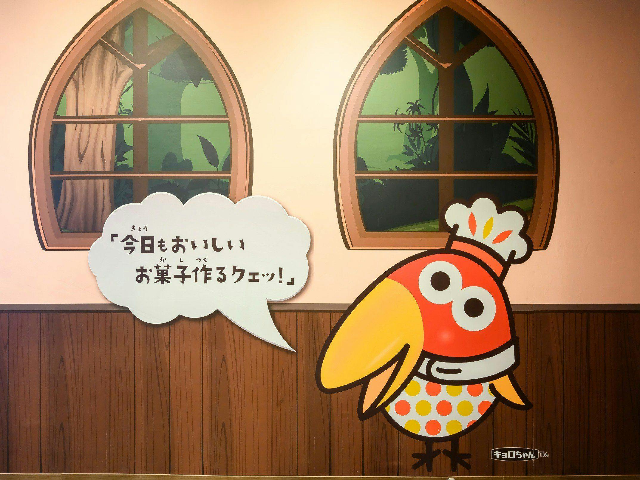 内装には、パティシエ「キョロちゃん」や森永製菓のお菓子がデザインされ、