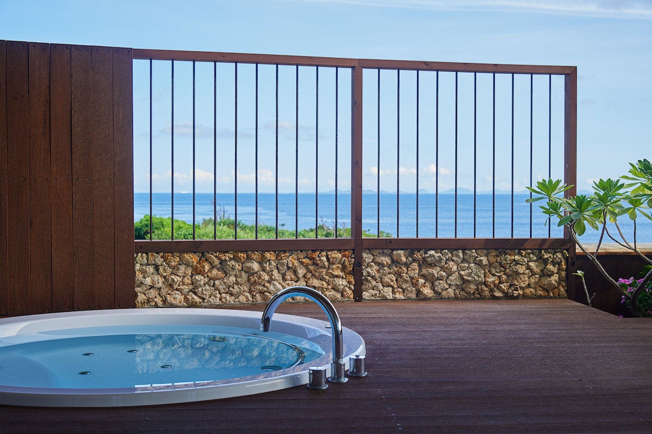 東シナ海が一望出来るジャグジー付きのお部屋です。ビーチまではのんびり歩いても5分で到着。テラスにランドリースペースを兼ね備えております。洗濯機もございますのでご自由にお使い下さい。お部屋は自然素材を基調とした落ち着きのある空間となっております。サータ社のベッド、自然豊かな眺望で快適な滞在を。■室内禁煙とさせていただいております。※テラスと庭は喫煙可