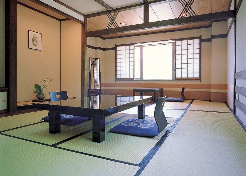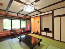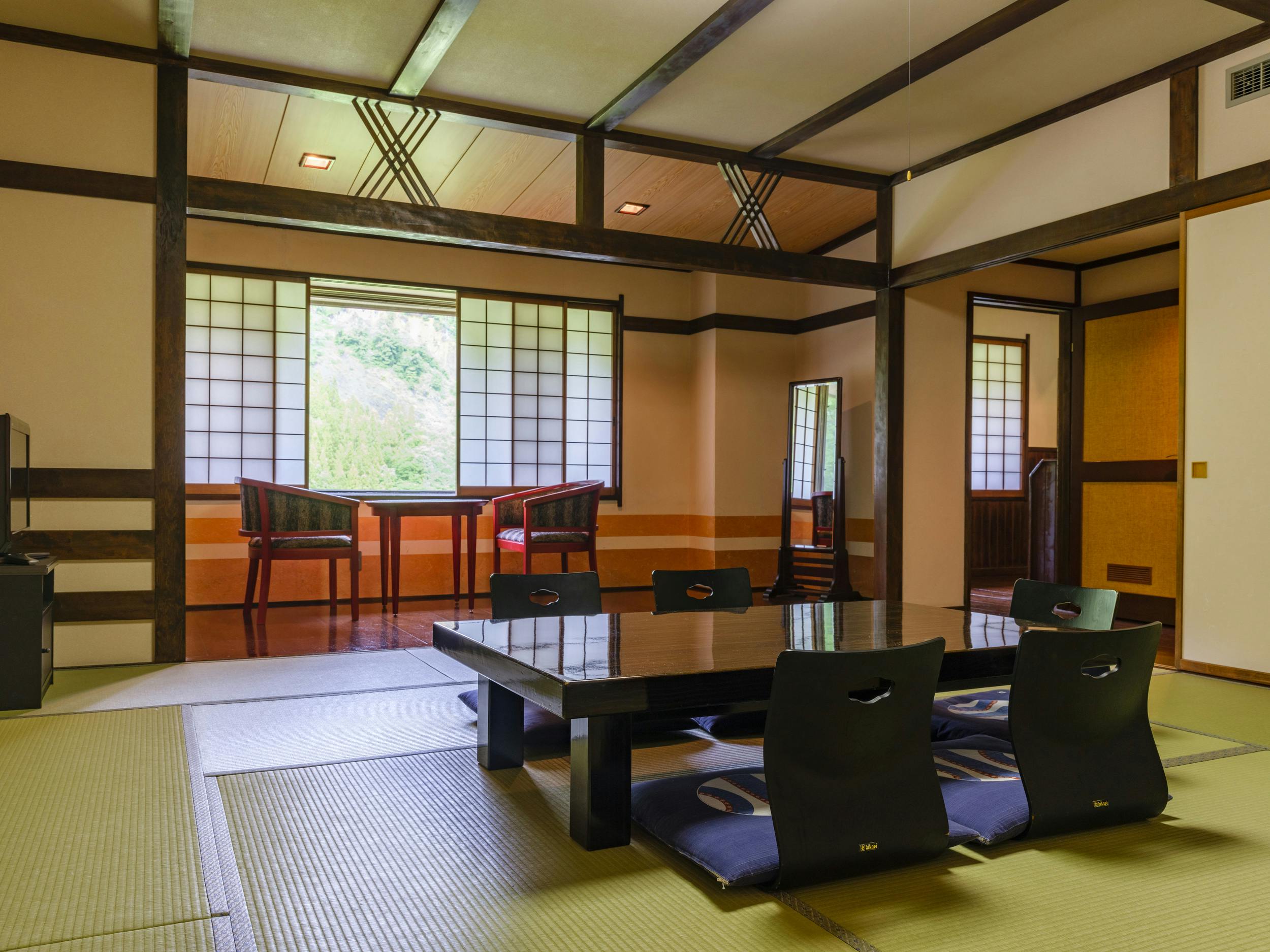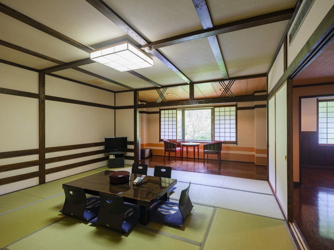 北アルプス側のお部屋で、和室のくつろぎとベッドの利便性を備えたお部屋