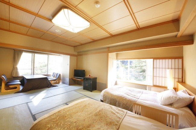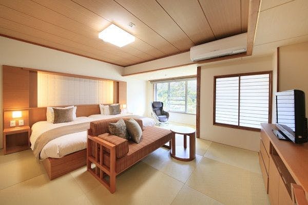 上質な空間でお寛ぎいただけるようダイニングテーブルを広縁に配置した完全禁煙のお部屋です。畳敷きにベッドを備えた機能的なツインルームこちらのお部屋は2名様定員です。添い寝のお子様のご利用は出来かねますのでご了承ください。
