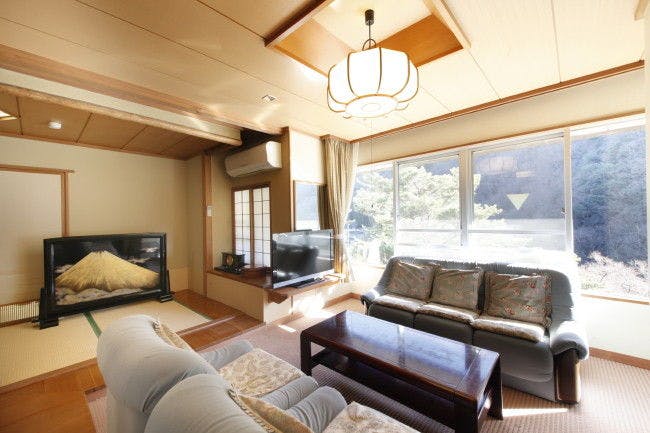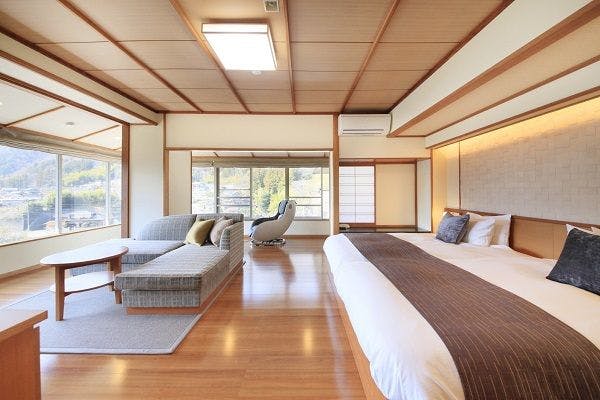 2018年3月リニューアルオープンの最上階客室です。当館で一番良い眺望の客室で、下部川と常葉川が合流し富士川に注ぐ景色も見ることができます。フローリングの空間にシモンズ製のツインのローベッド。ユニットバスに変わり、シャワーユニットを完備。マッサージチェアやソファーでゆったりと二人のお時間をお過ごしください。●2名様でご利用頂けます添い寝のお子様のご利用は出来かねますのでご了承ください。●広さ10畳+ツインベッド●こちらのお部屋は禁煙となっております