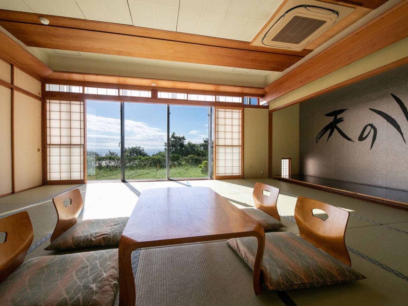 三河湾の大パノラマを望む天空の宿。標高380mの解放感のある展望露天風呂からの景色は格別です。夜には満点の星空と蒲郡市街の夜景を独り占め。まるで銀河の中にいるような、そんな空間をお楽しみください。