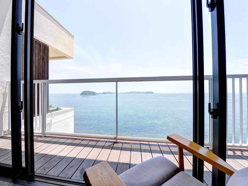 全室オーシャンビュー。ベッドに寝そべりながら、お気に入りの曲をかけて読書をしたり。。自分だけの島時間を堪能。<アメニティ>TV、冷蔵庫、浴衣、タオル、バスタオル、ドライヤー、歯ブラシ、カミソリ、足袋、CDプレイヤー、インターネット端子バス・温水洗浄トイレ完備。