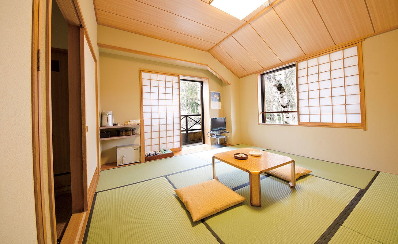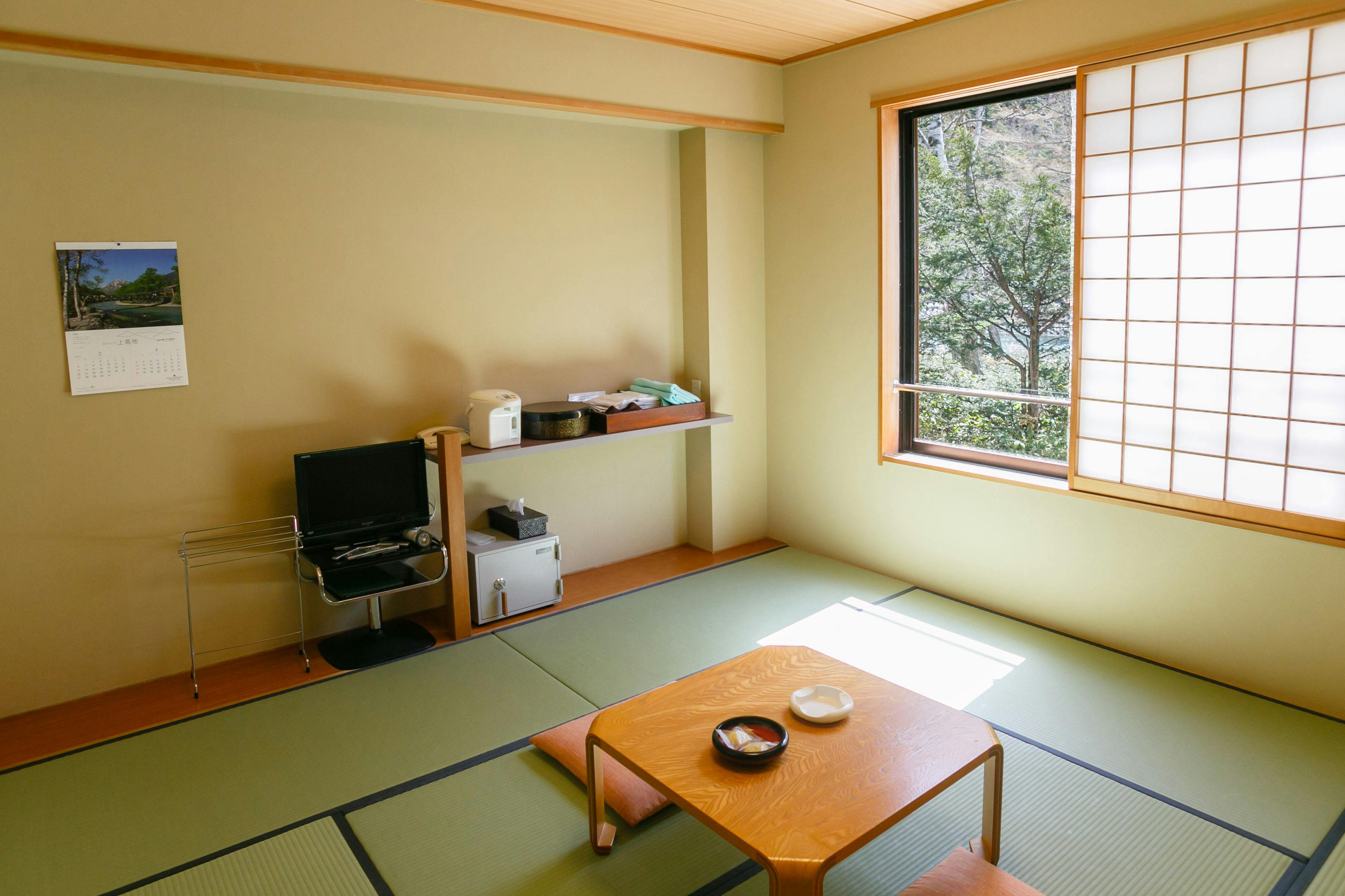 眺望指定無し・和室8畳・洗面台・トイレ付のお部屋です。「清潔で快適に過ごせる」と評判のTHE PARKLODGE(ザ・パークロッジ)上高地の和室はこじんまりとした空間ですごく居心地がいい。
