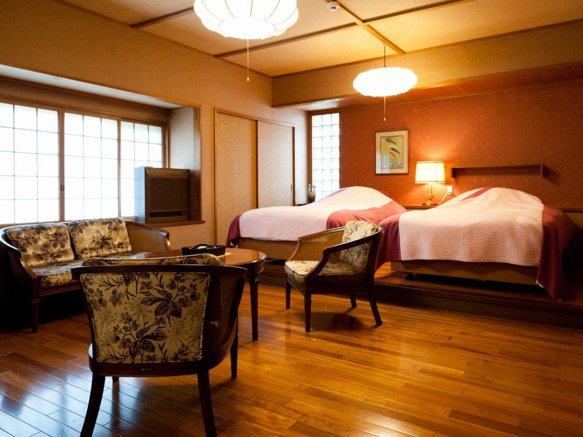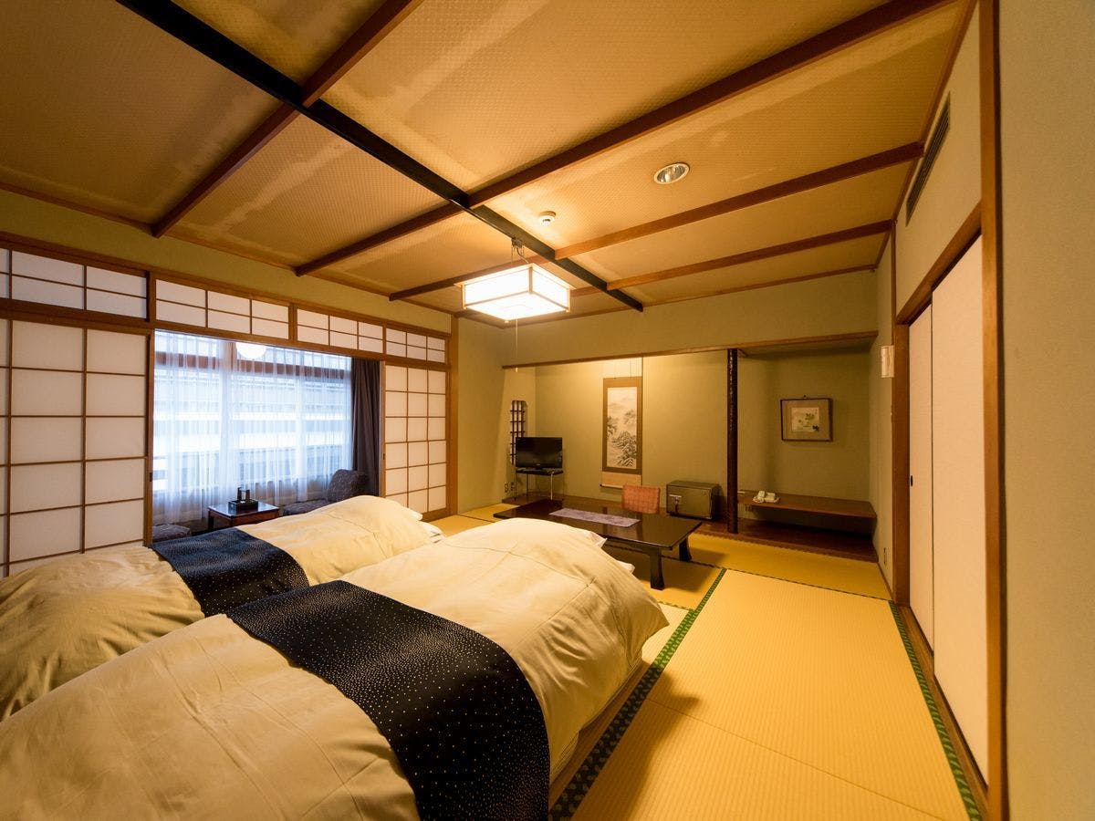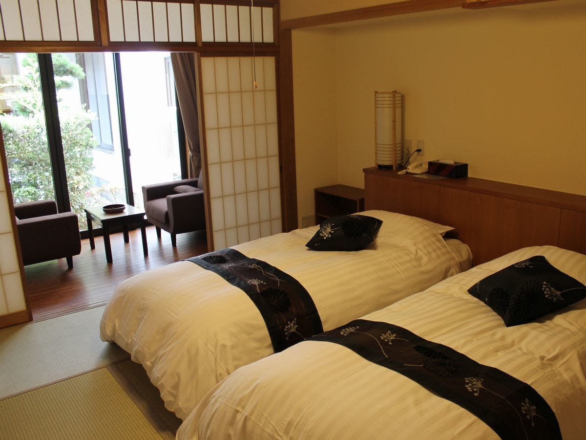 和室又は和室にマットレスベッドを2台設置したお部屋をご用意。