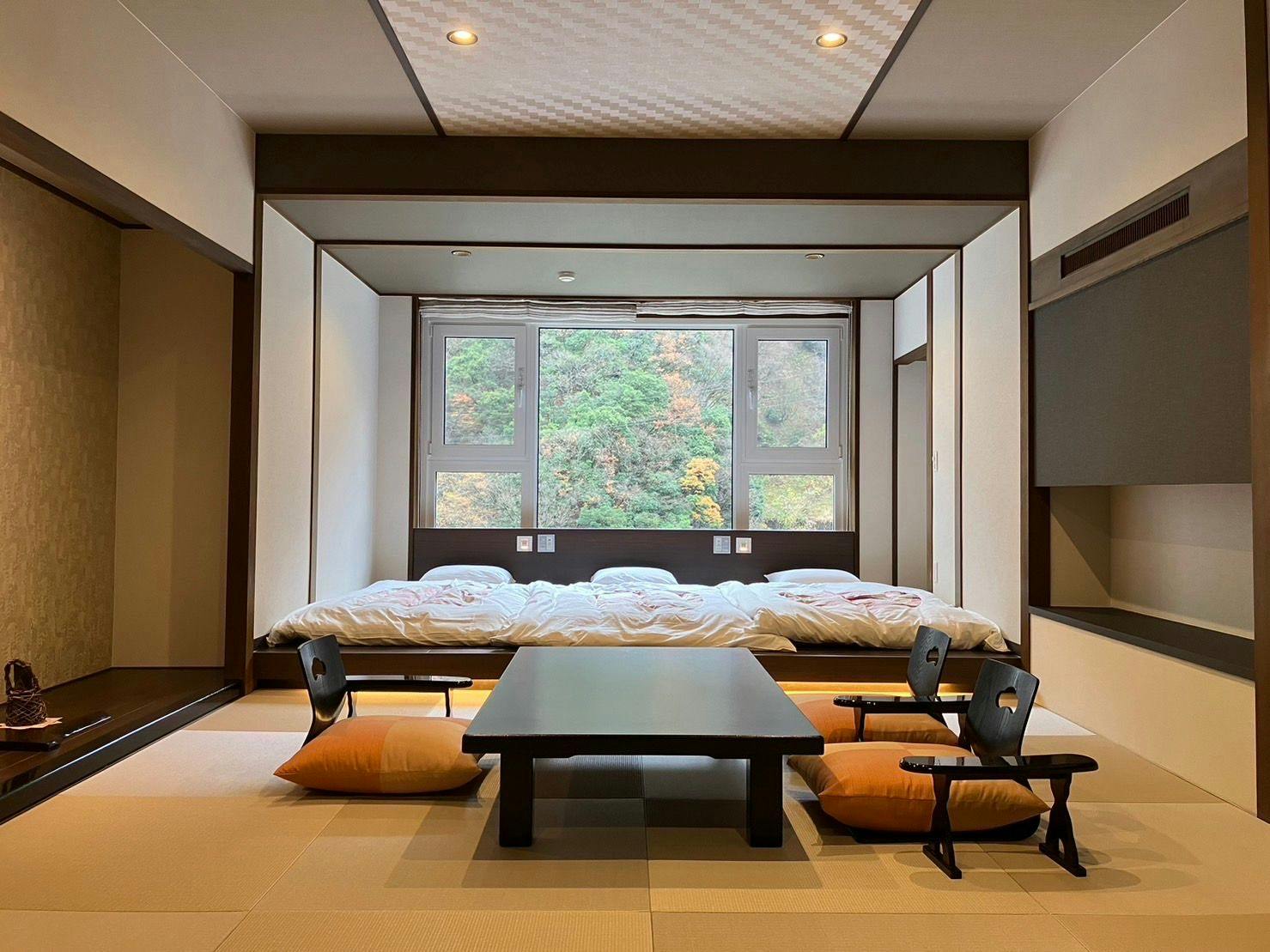 ・峡谷側に面しており、黒部峡谷の美しい自然、対岸を走るトロッコ電車(運行時)など、眺めをお楽しみいただけるお部屋です。・ 和室8畳+ベッド2台・バストイレ付き(お風呂は温泉を引湯、洗浄機付きトイレ)・2017年リニューアル