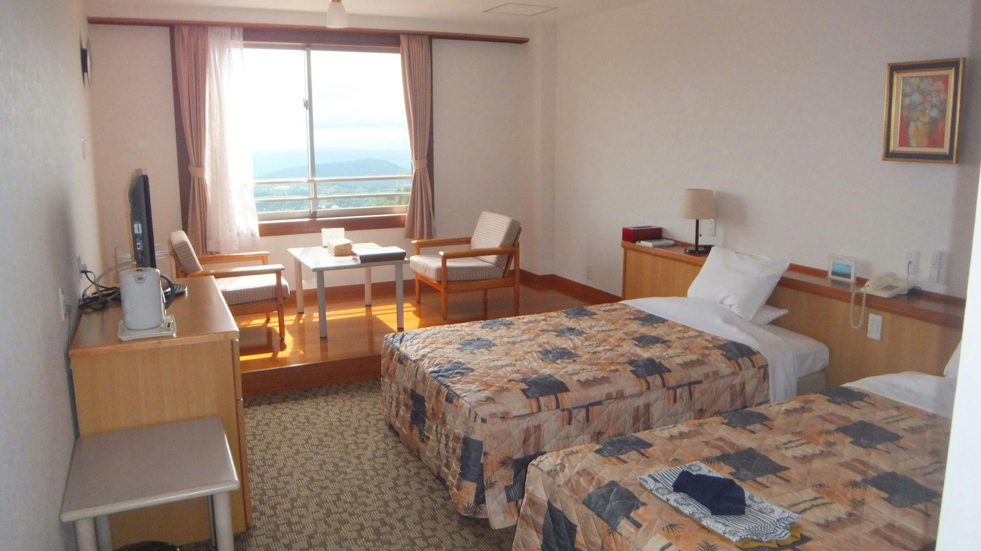 ベランダ付で開放感のある洋室ツインです。視界の良い時は錦江湾に浮かぶ桜島が一望出来ます。【禁煙室】ベランダも禁煙です。