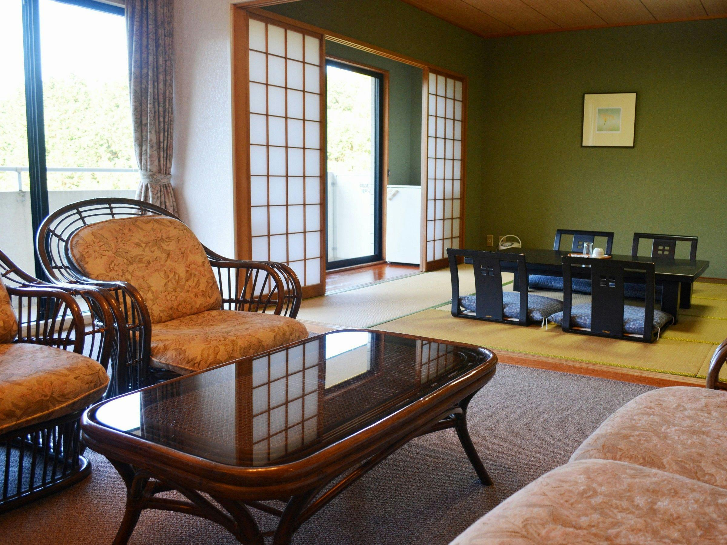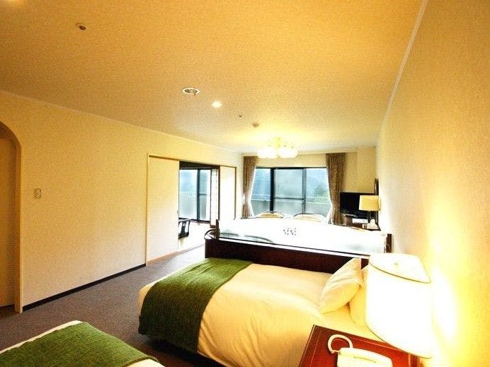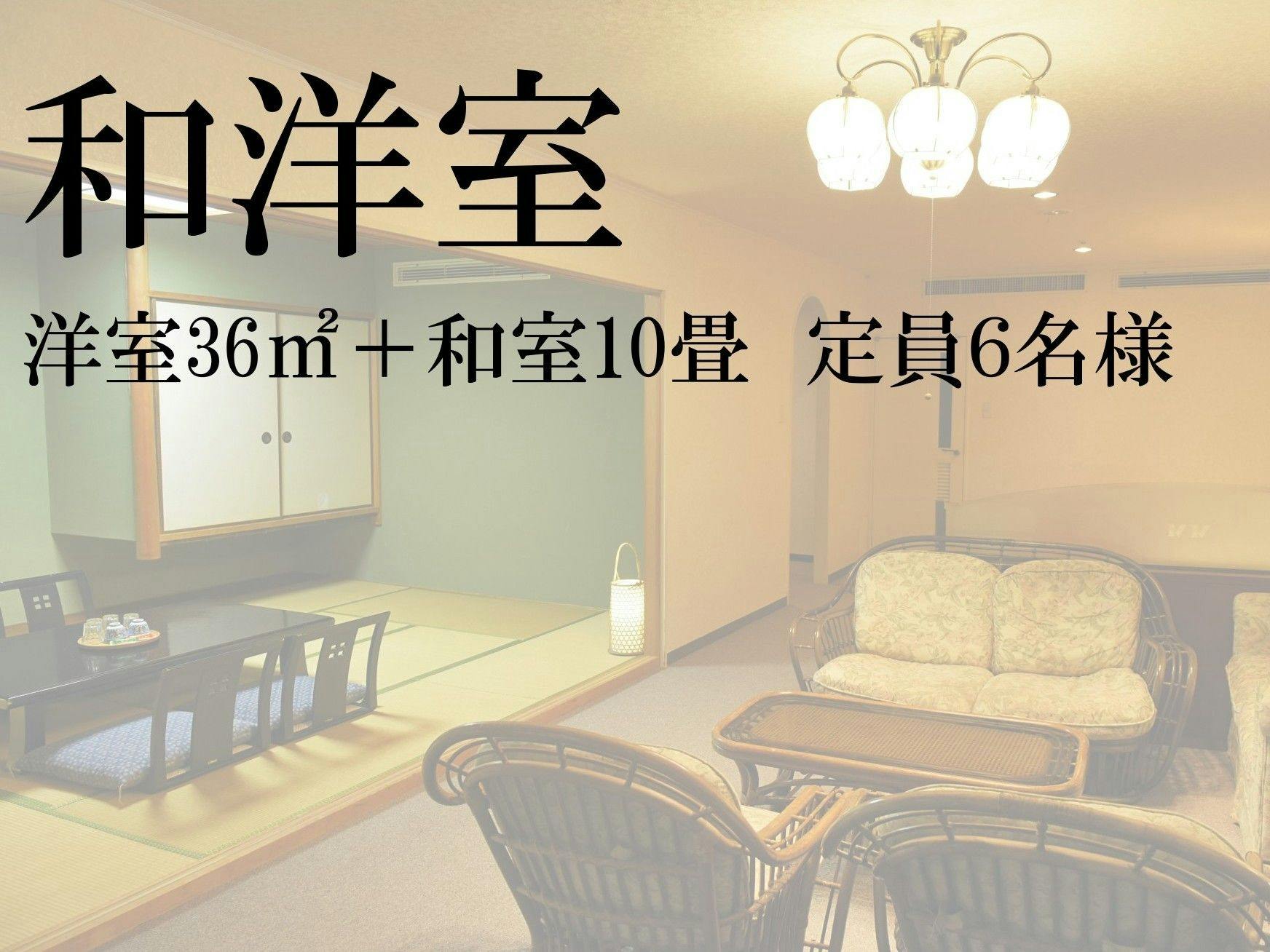 ご利用 :2名様~72平米の贅沢な空間を満喫できる和洋室からなるスィートルームです。ご家族や、お仲間と、大人の方が6名様までご利用いただけます。窓からは一面に広がる山々の風景をお楽しみ頂けます。・和室の布団敷きはセルフサービスとさせていただいております。予めご了承下さいませ。・バス、洗浄機能付きトイレ、冷蔵庫、テレビ付き