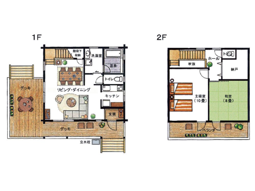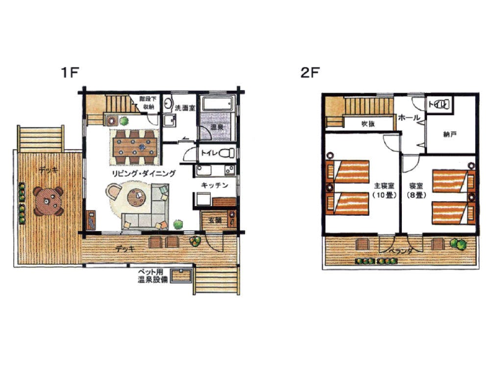 リビング+ダイニング+洋室2ルーム+和室+キッチン+ランドリー+客室温泉+ウッドデッキ