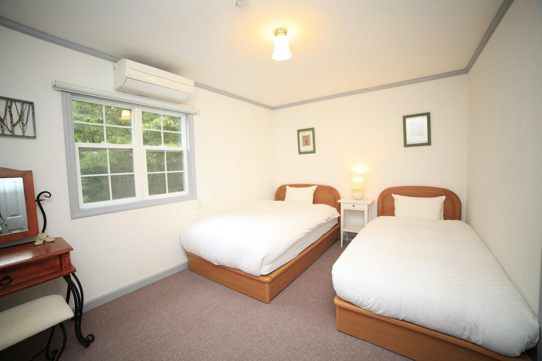 シングルベッド2台・液晶テレビ・シャワールーム・洗面台・トイレ・冷蔵庫・脱臭機・電気ポット・ドライヤー・エアコン