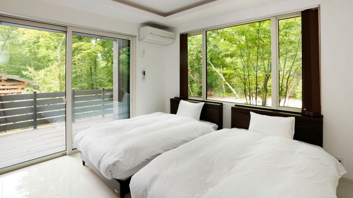 客室設備:洋室ツイン2室・冷蔵庫・テレビ・冷暖房・バス・トイレ・洗面・脱臭機・プライベートドックラン・飛び出し防止ゲート