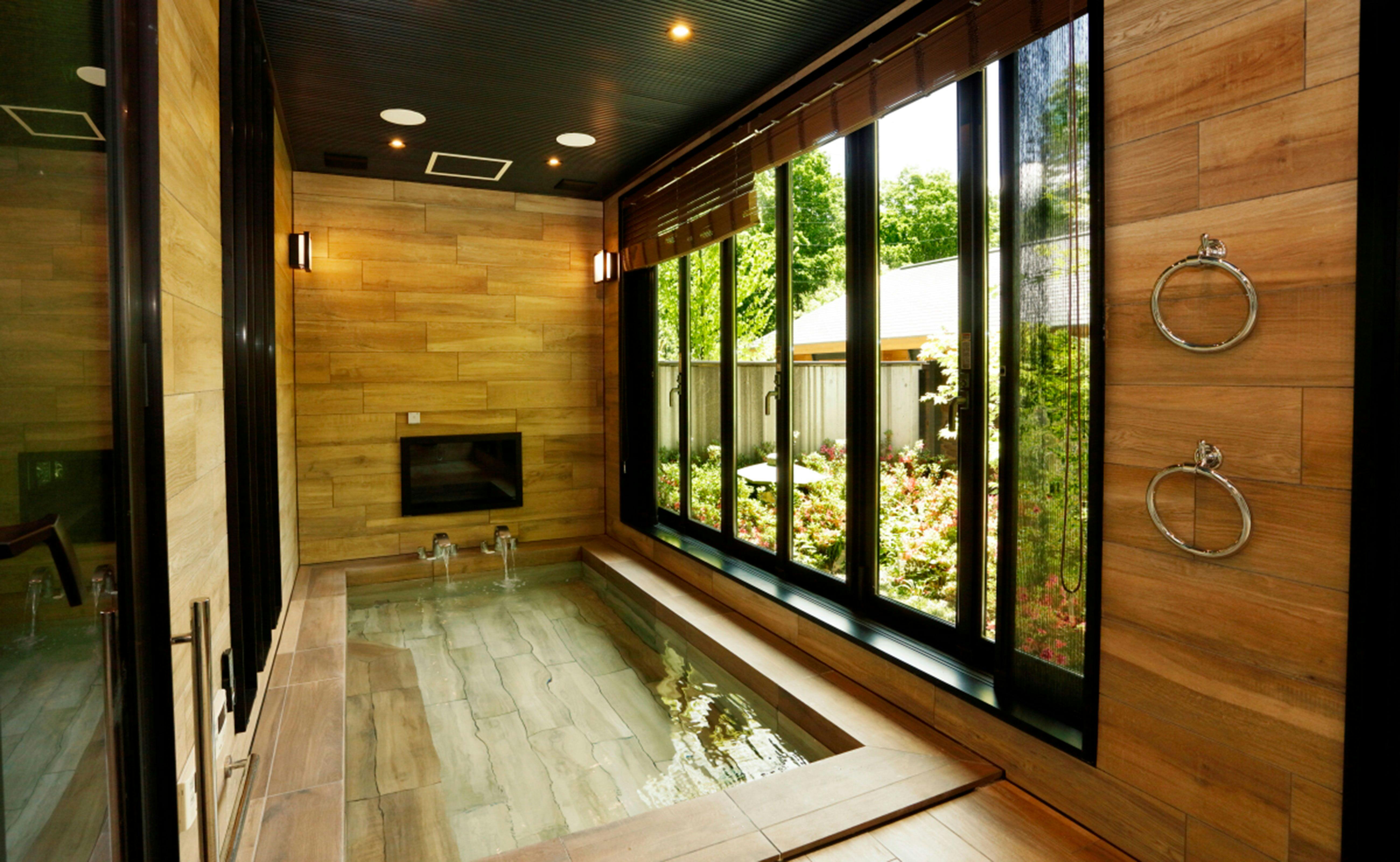 「源泉かけ流しの客室温泉」付き。大きな窓から沢山の光が入り込む「半露天」湯舟につかりながら美肌の湯「羽鳥湖温泉を心ゆくまでご堪能いただけます。