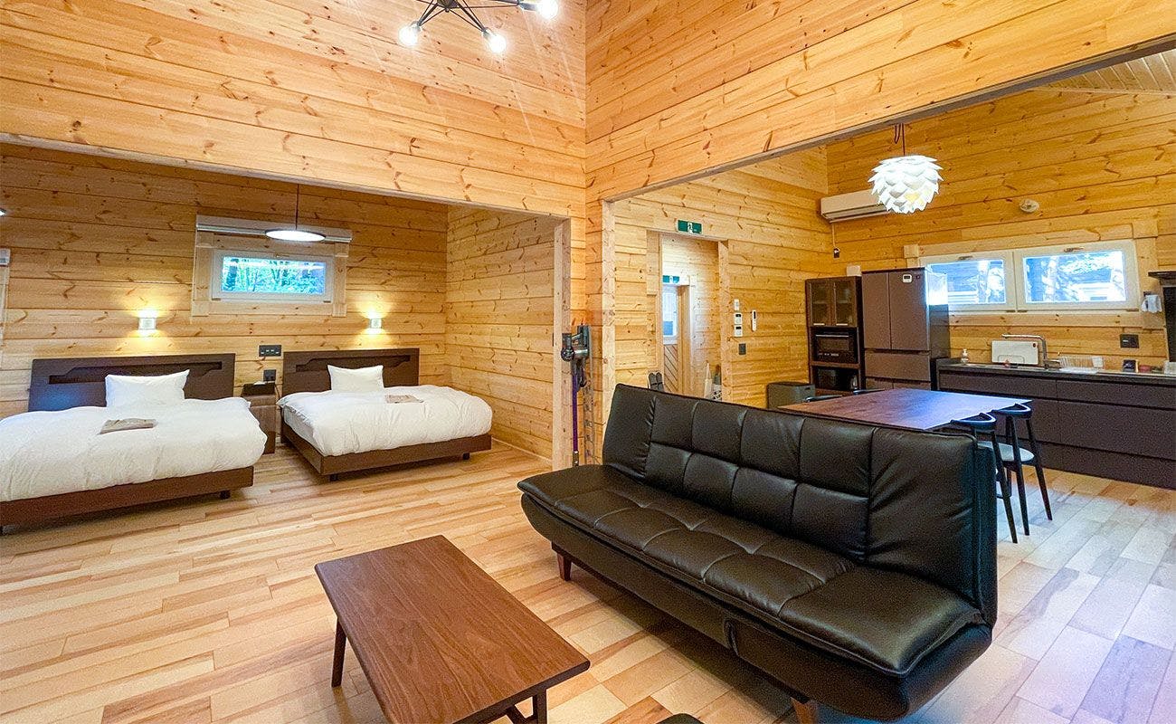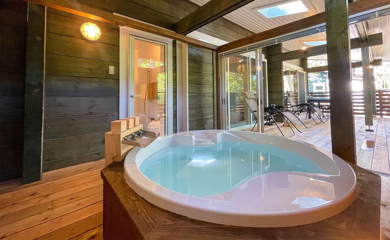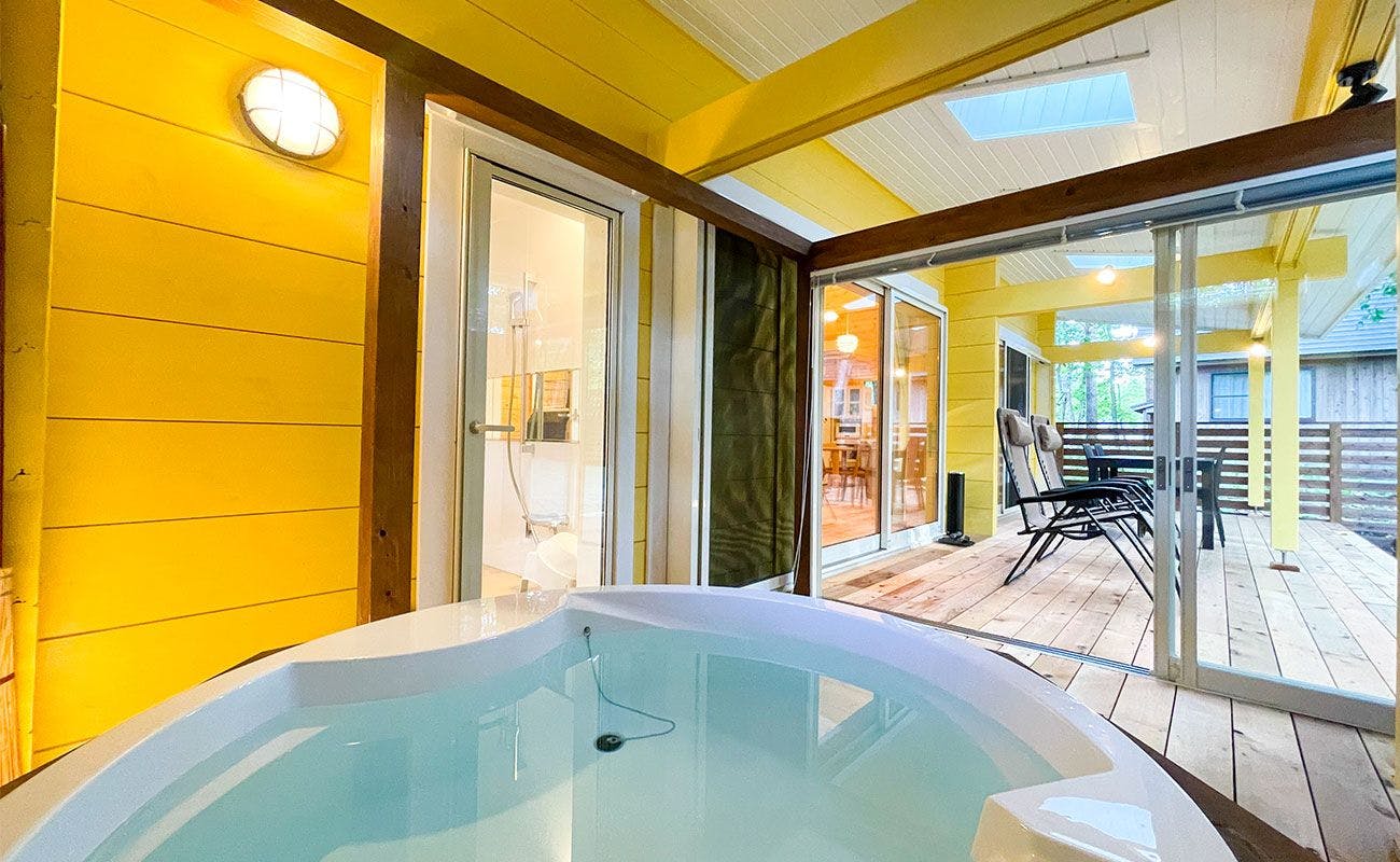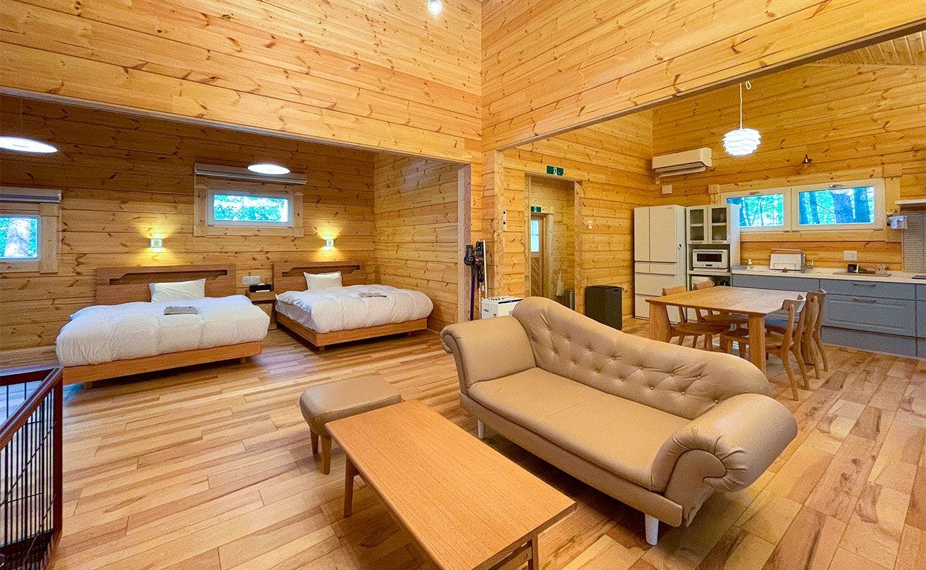 全室プライベートドッグラン&天然温泉が付いた最高級コテージ。充実のキッチンやランドリー機能も備え、長期滞在も可。気軽に貸別荘気分が楽しめます。