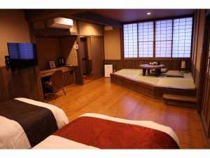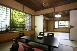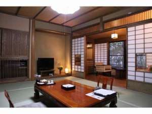 お部屋は別棟にあり、一旦本館から出る必要がありますが、二間続きの部屋でゆったりご利用できます。(別棟までは屋根がございます)