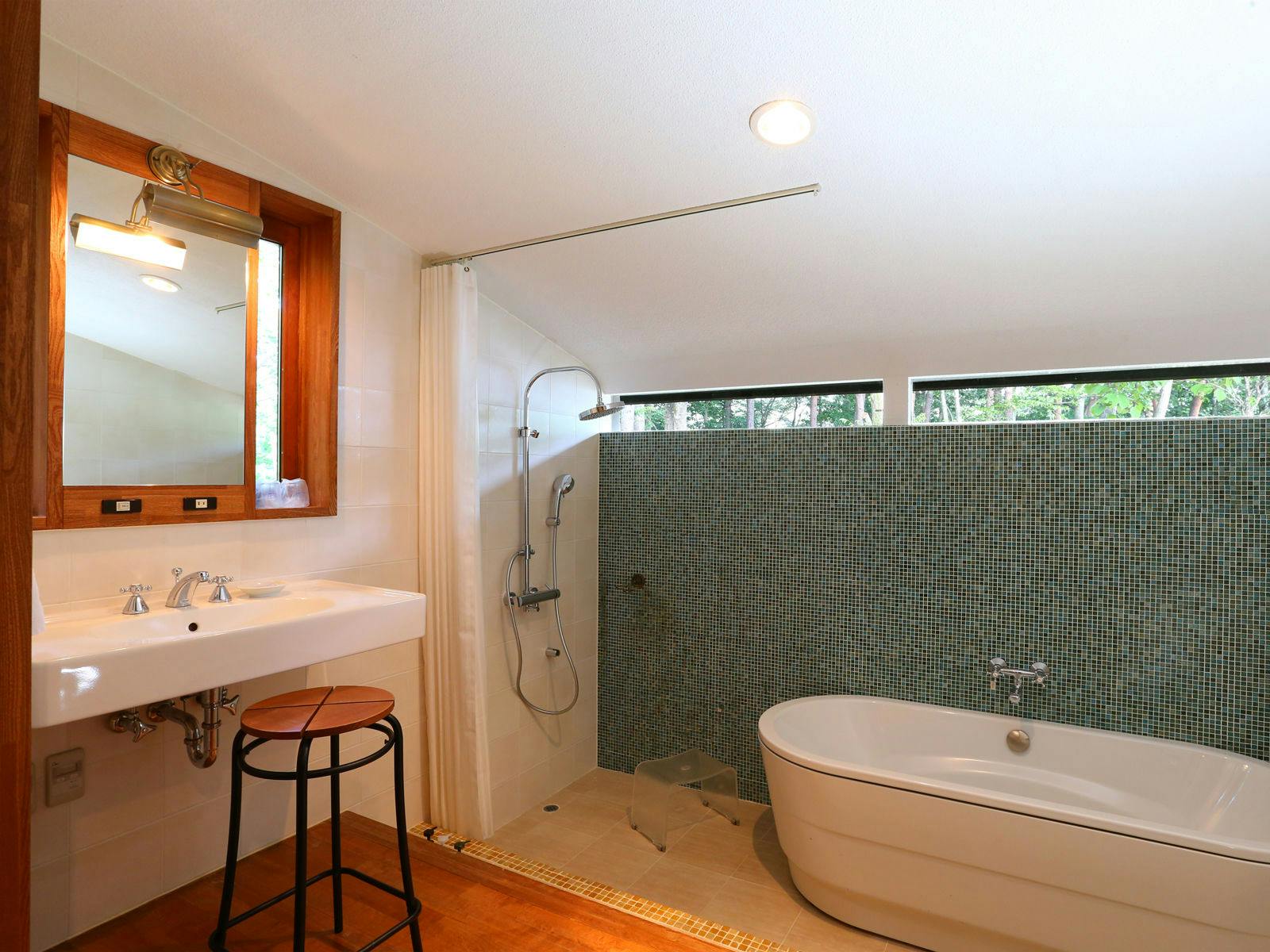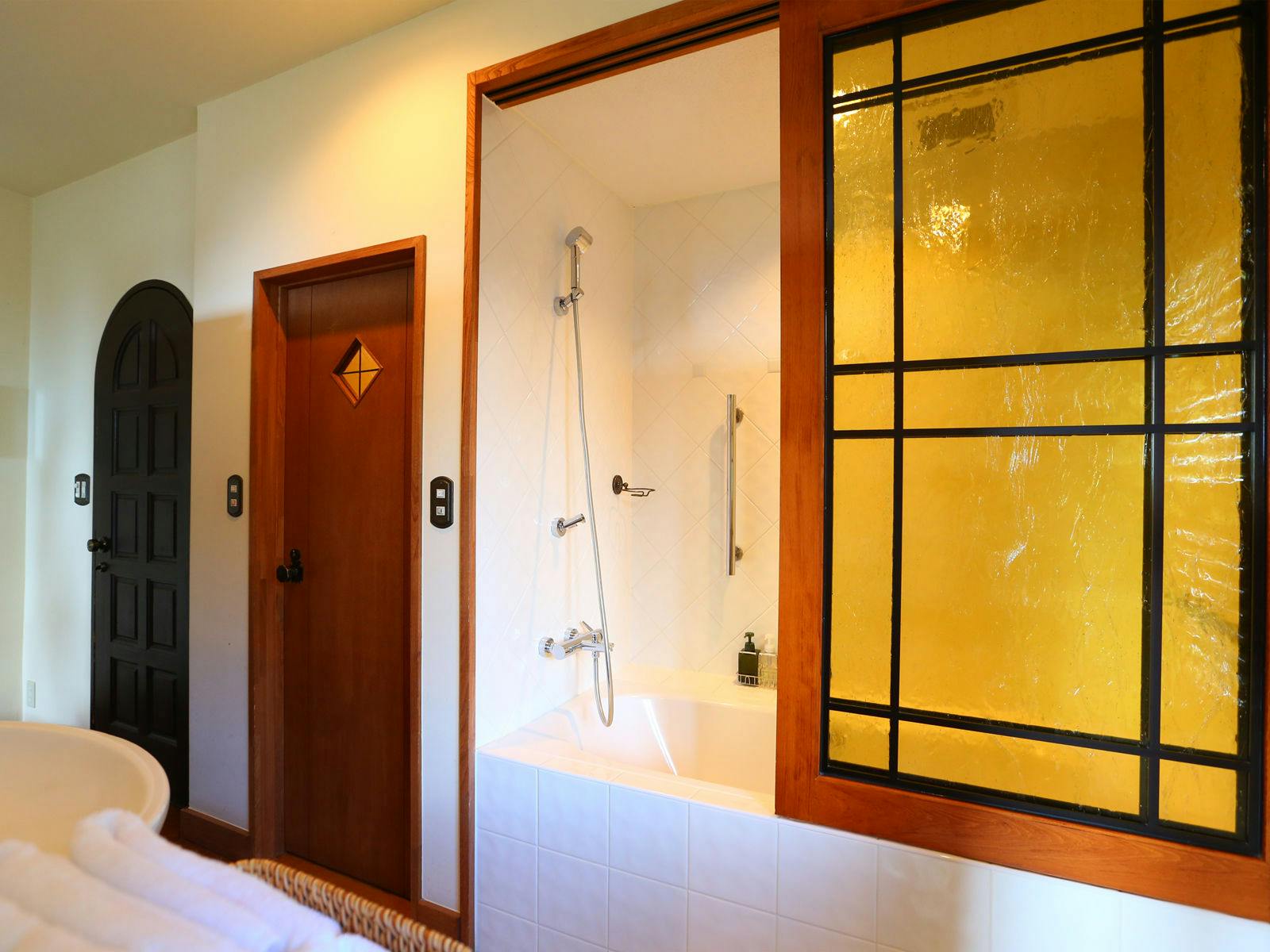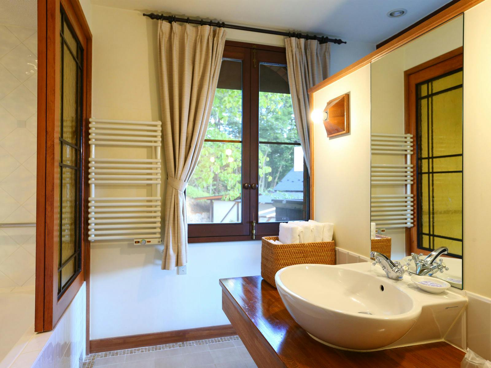 広々とした置き型のバスタブで、ゆったりバスタイムをお楽しみください。