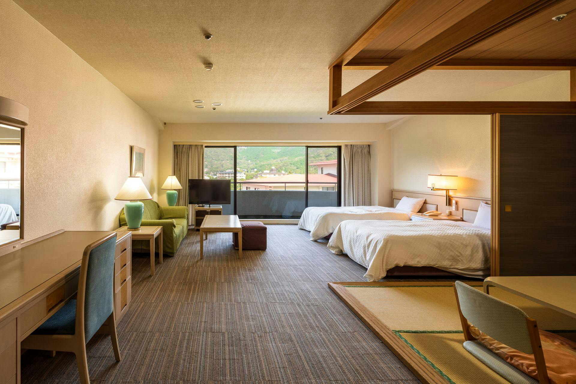 洋室と和室が融合した解放感あるお部屋は、ソファーでくつろぐのも良し、和室で寝ころんでも良しなお部屋となっておりますので、お客様のお好きな様にゆったりとした時間をお過ごし頂けます。