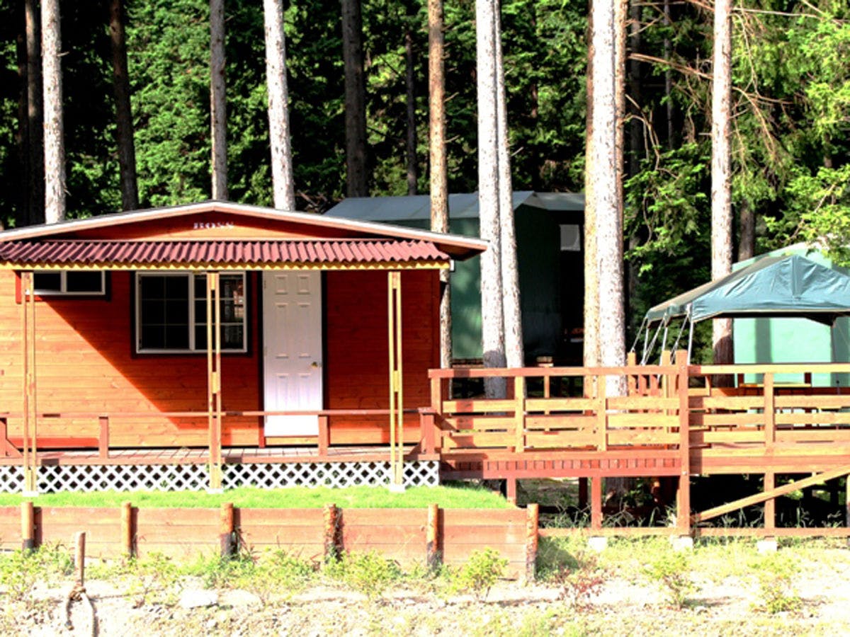 テントハウスが付いたデッキハウス。