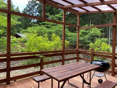 森林浴に囲まれながら広いデッキでBBQをお楽しみいただけます。
