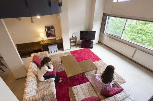 ゆったり間取りのツインルーム+リビングです。独立したツインルームがあり、他にリビングスペースを配したお部屋です。リビングにベッドがあり通常定員3名様(スタジオベッドソファ対応にて最大4名様までのご利用が可能です。)
