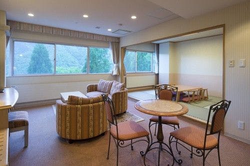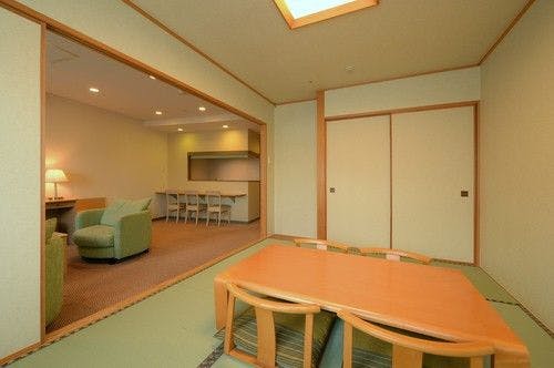 和室と洋室がセットになったモダンな雰囲気の客室です。リビング付和洋室と異なりキッチンがなく、ゆとりある間取りとなります。