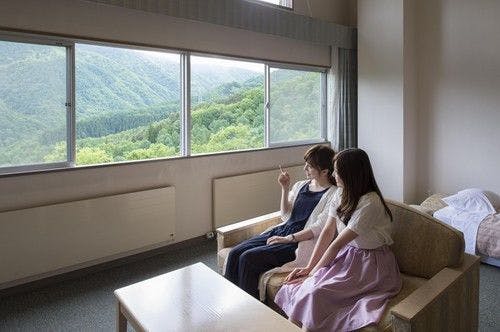 34平米 スーペリアツインと同様の間取りです。安曇野市街が一望できるお部屋を確約いたします。(天候により景色が望めない場合もございます。)