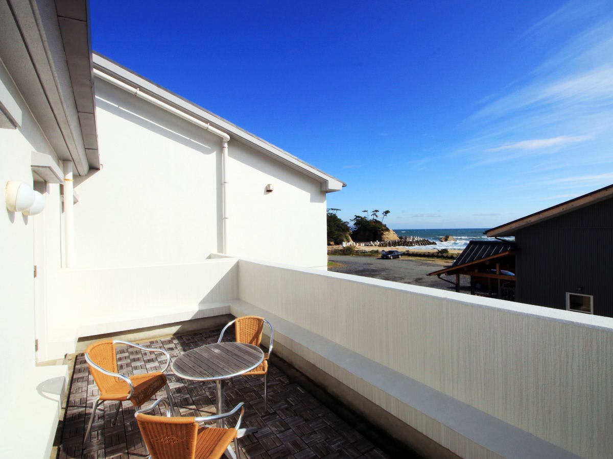 プライベートビーチさながらの太田尻海岸と太平洋の海原が望める眺めのいい二階のお部屋です。畳の上にごろんと寝転んでくつろげるやすらぎの和室です。【客室アメニティ】・ケトル(0.8L)・地デジ対応テレビ・冷蔵庫・ドライヤー・バスタオル・フェイスタオル・歯ブラシ・作務衣